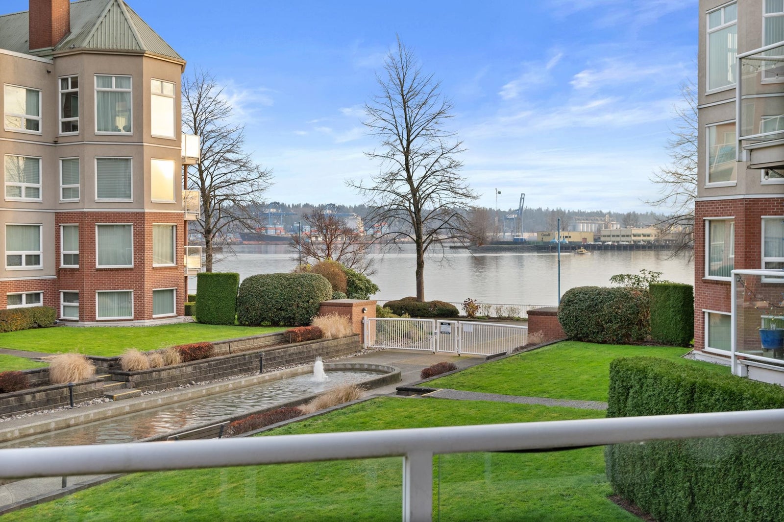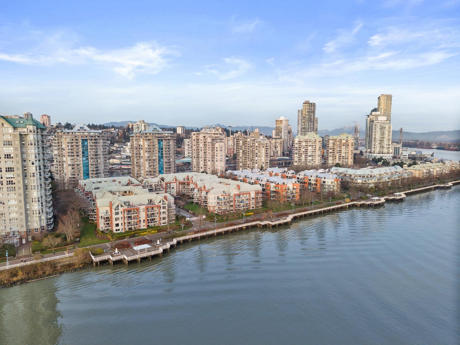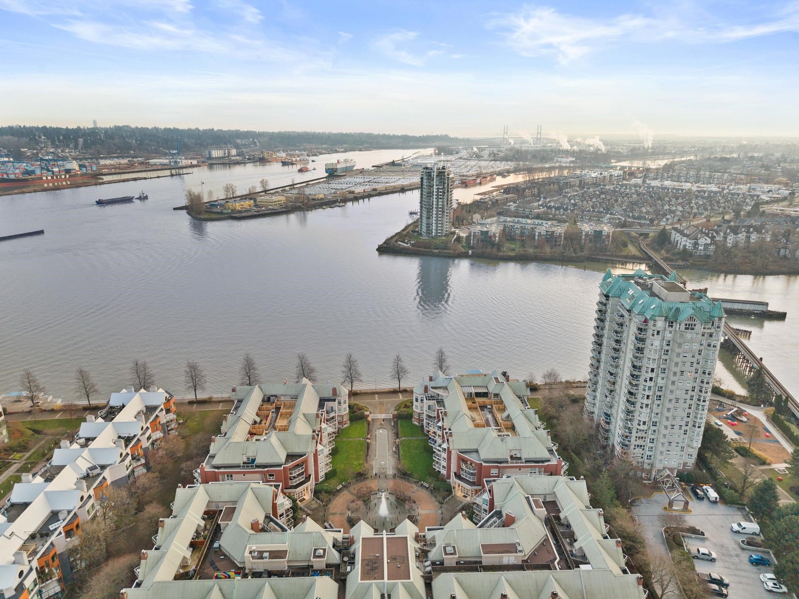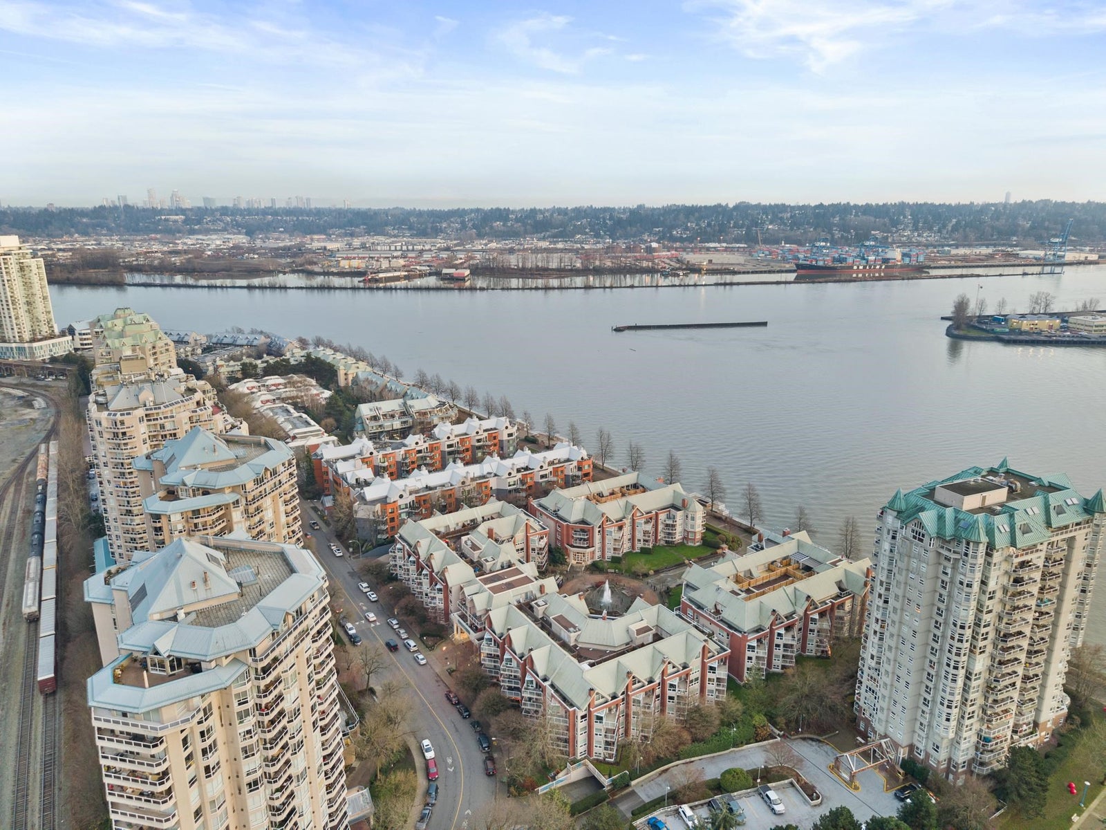 Living at the Quay! WATER VIEW! Experience an exceptional blend of comfort & elegance in this remarkable 2-bedroom, 2-bathroom home at Tiffany Shores! Featuring an open-concept design with an expansive floorplan, a gourmet kitchen w/ S/S appliances, durable laminate flooring, & a dedicated laundry room with a new washer and dryer, this home is as functional as it is stylish. Step onto the large covered deck to take in breathtaking views of the Fraser River & picturesque fountains. With ample storage, 1 secure underground parking space, and 1 storage locker, this pet-friendly 2 pets OK, property is move-in ready & perfectly located just steps from the Boardwalk, shops, restaurants, transit & SkyTrain. New Roof completed 2024-adds extra peace of mind!