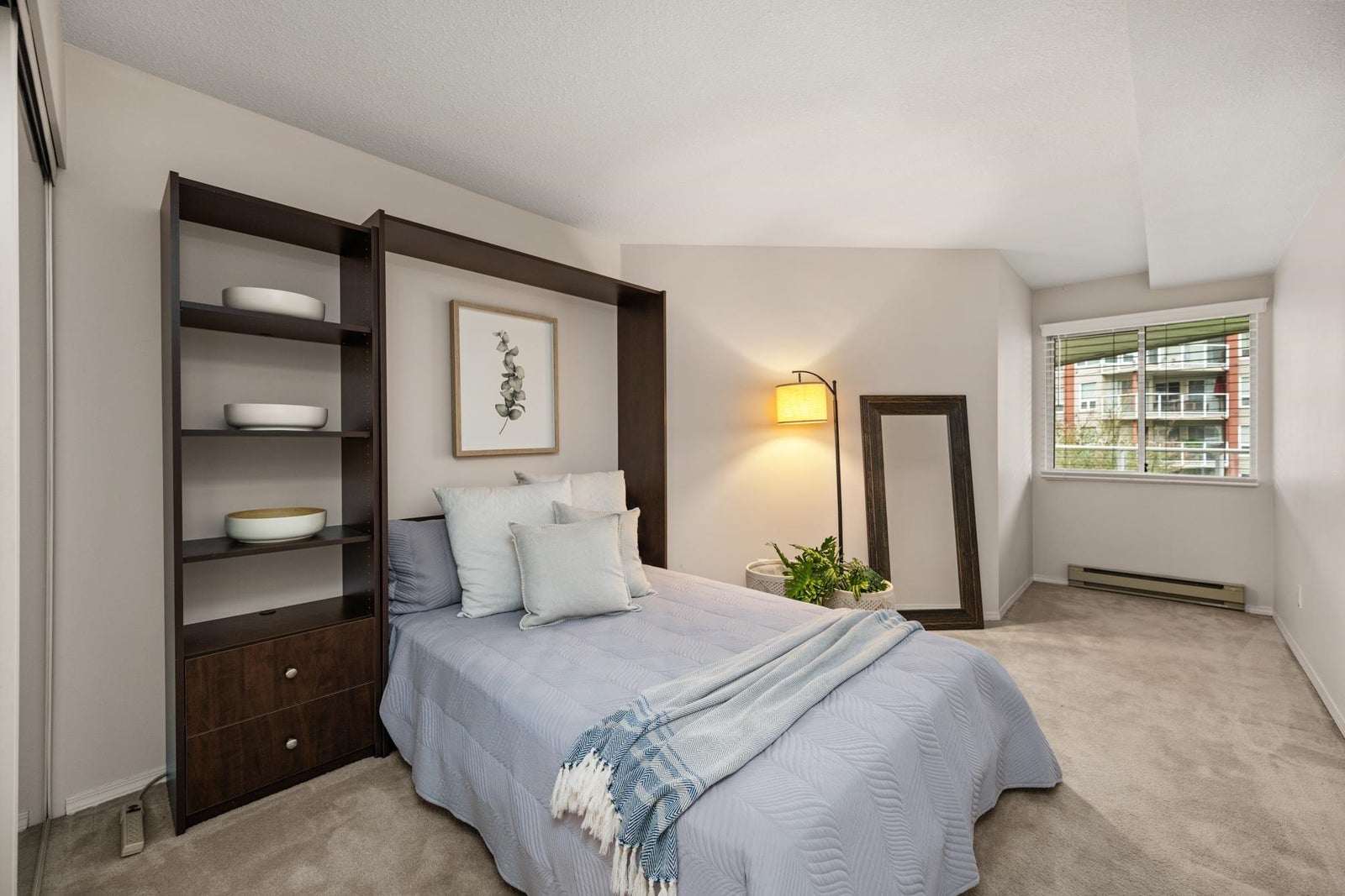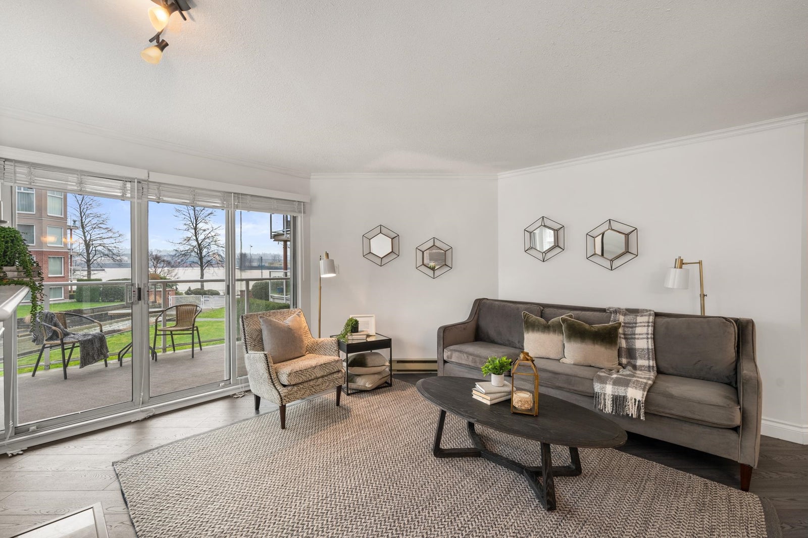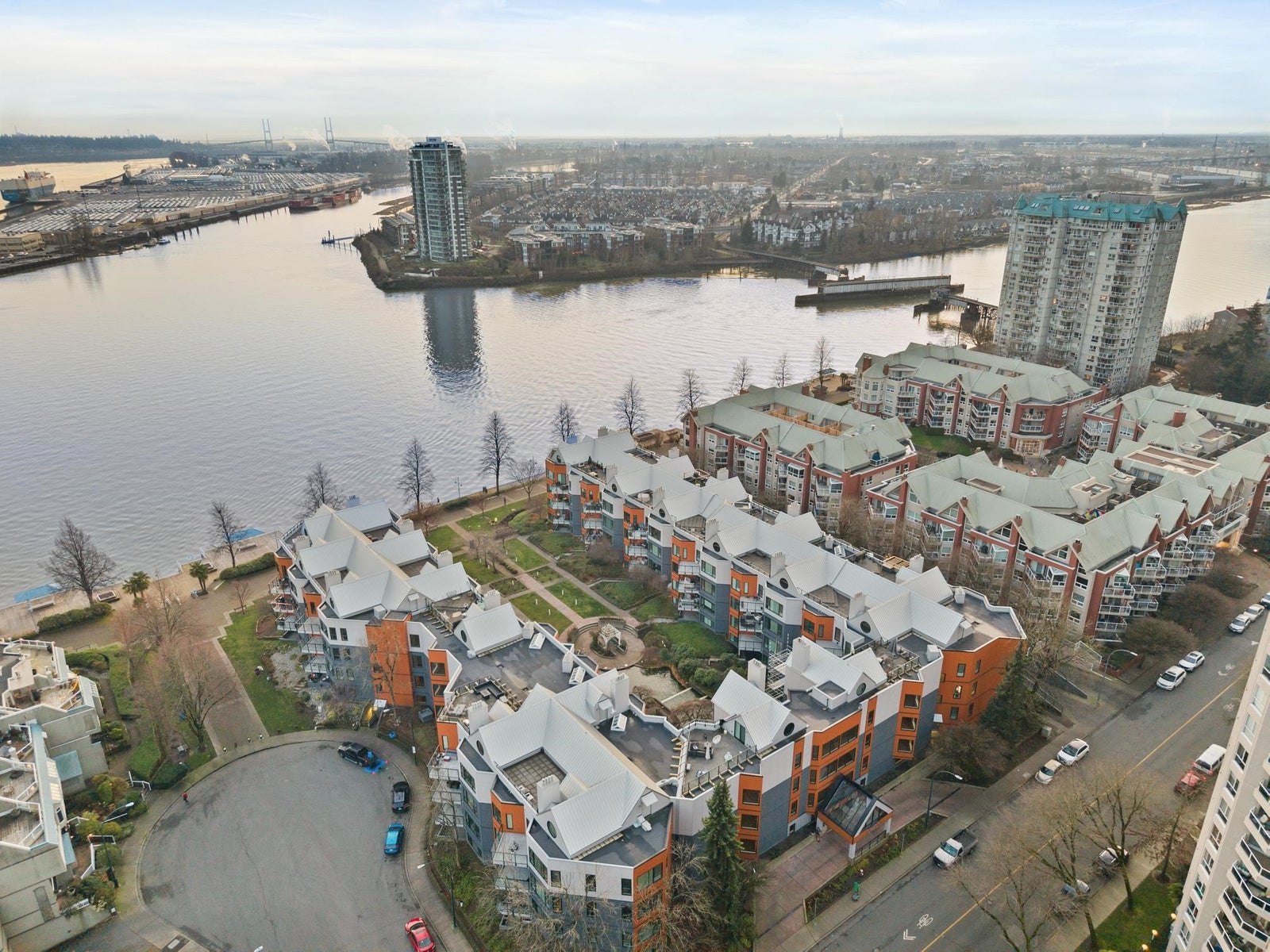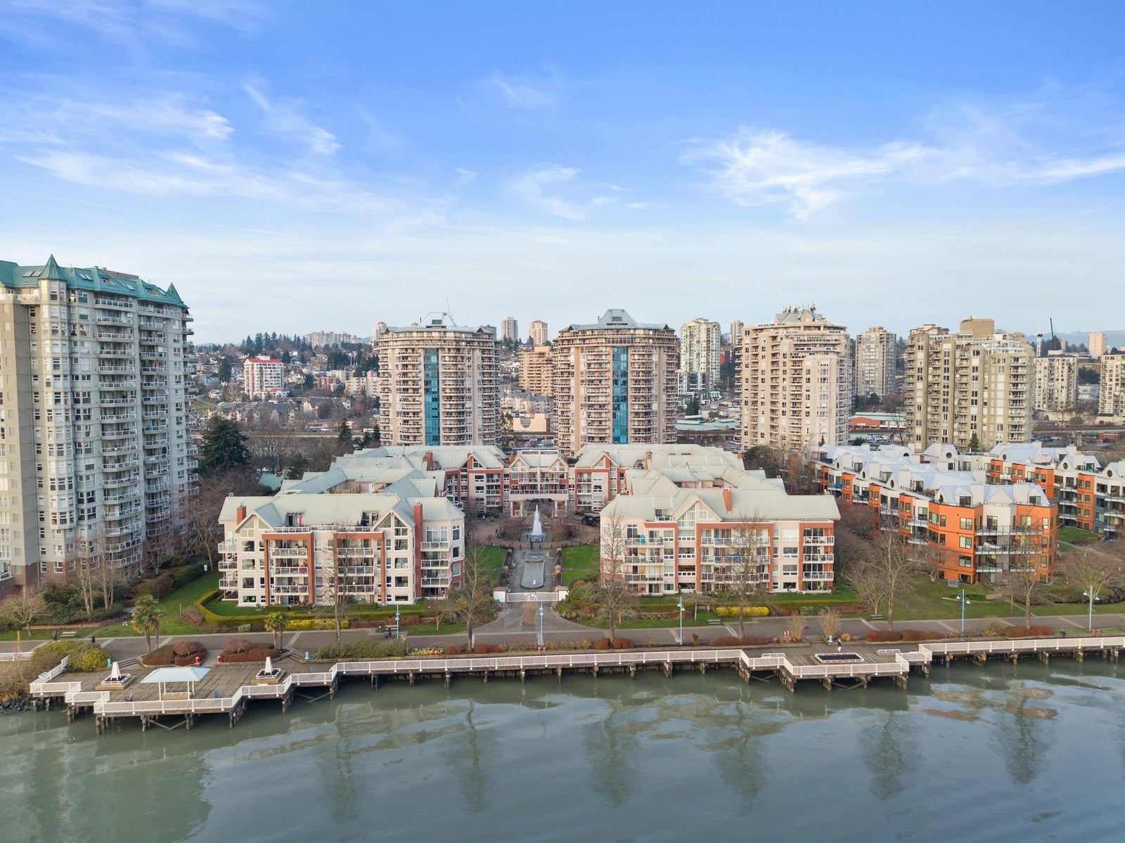 Living at the Quay! WATER VIEW! Experience an exceptional blend of comfort & elegance in this remarkable 2-bedroom, 2-bathroom home at Tiffany Shores! Featuring an open-concept design with an expansive floorplan, a gourmet kitchen w/ S/S appliances, durable laminate flooring, & a dedicated laundry room with a new washer and dryer, this home is as functional as it is stylish. Step onto the large covered deck to take in breathtaking views of the Fraser River & picturesque fountains. With ample storage, 1 secure underground parking space, and 1 storage locker, this pet-friendly 2 pets OK, property is move-in ready & perfectly located just steps from the Boardwalk, shops, restaurants, transit & SkyTrain. New Roof completed 2024-adds extra peace of mind!