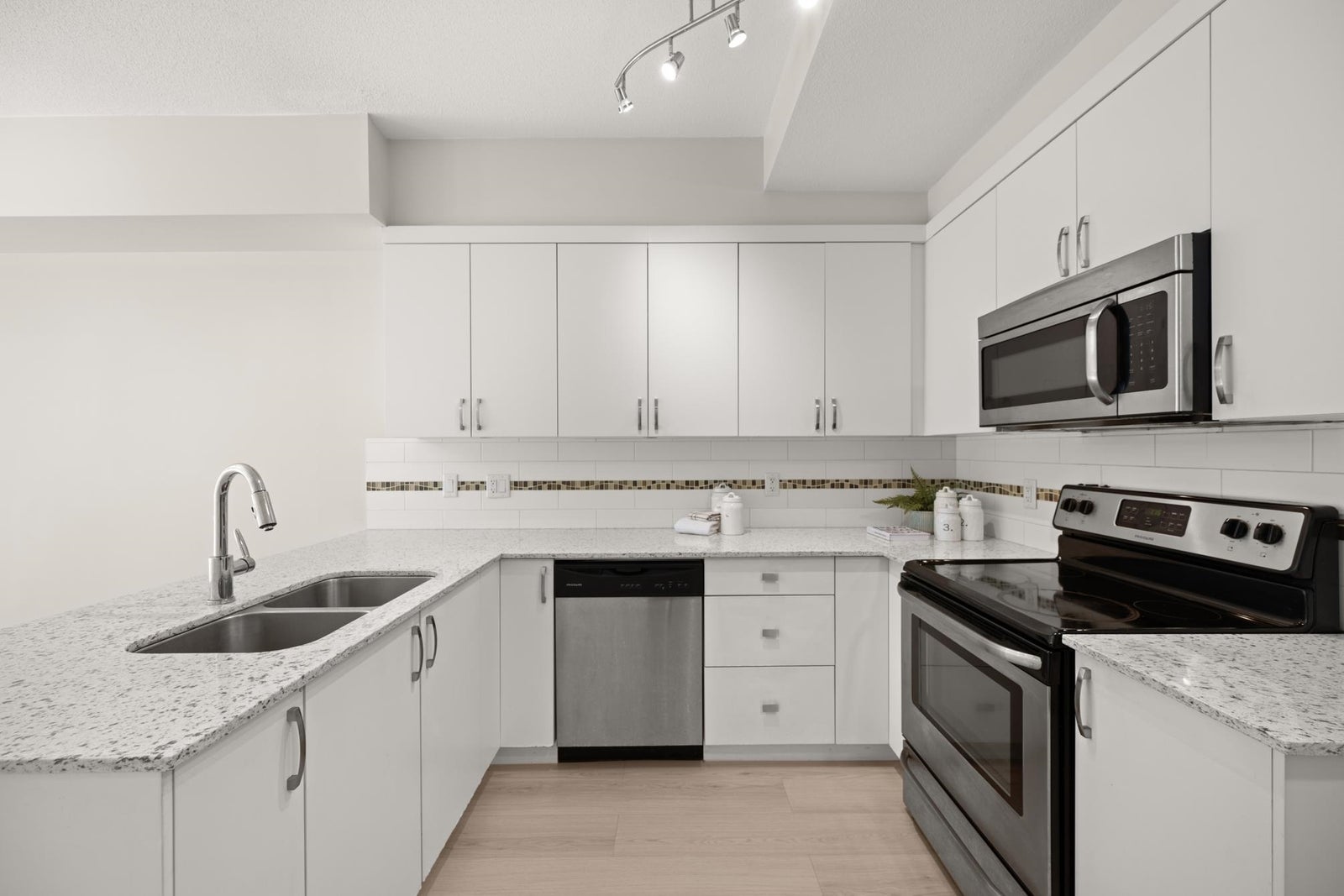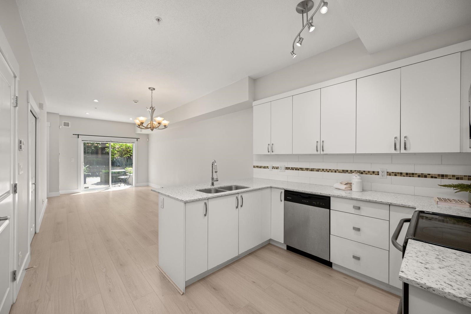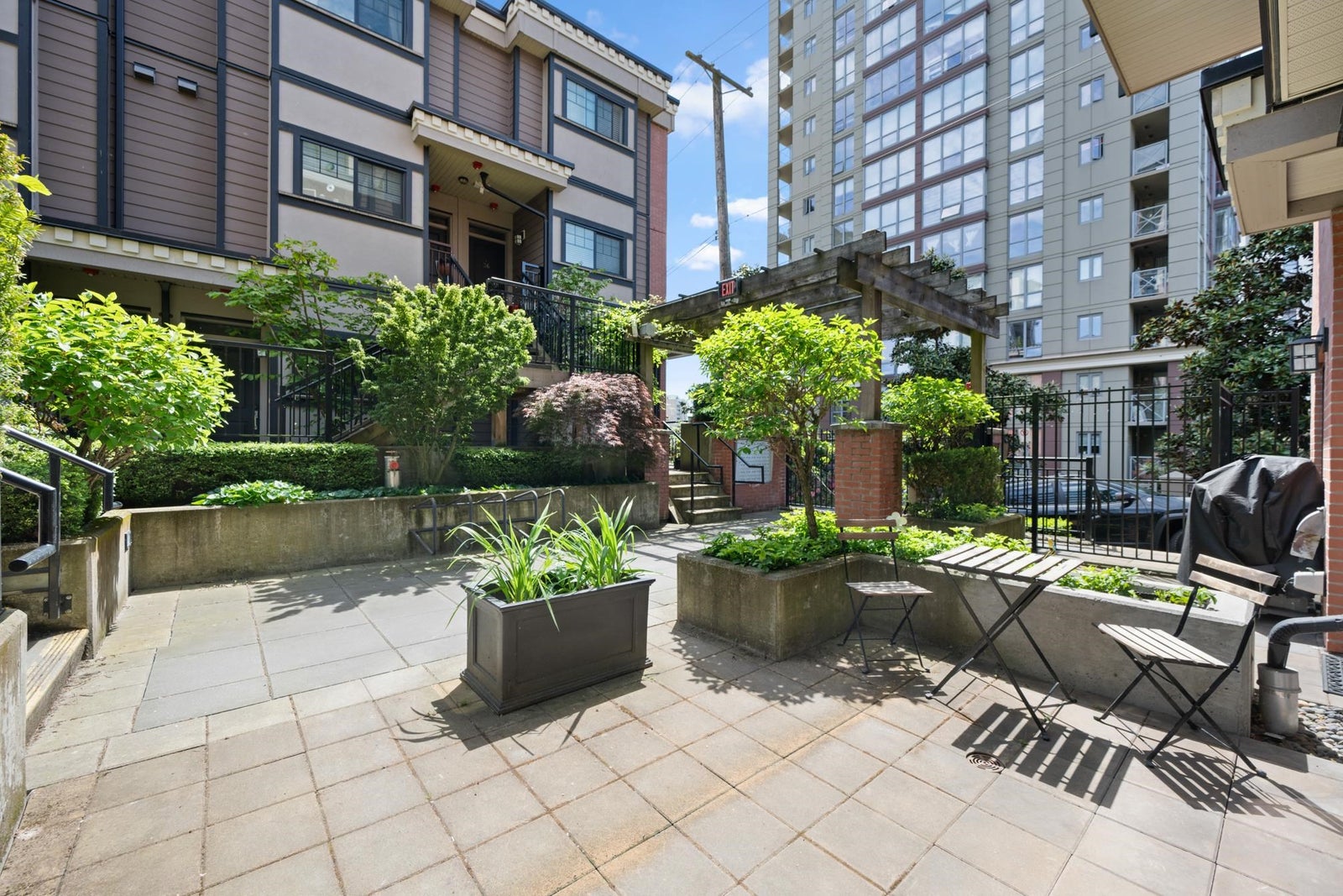 Beautiful 2 BDRM + DEN Townhome in the Boutique Brickstone Walk collection, located in the HEART of vibrant Downtown NW. Features a versatile DEN—ideal as a home office or easy 3rd BDRM. A convenient 2-piece BTHRM is located on the main level. Open-concept layout showcases an oversized chef’s kitchen w/ S/S appliances, quartz counters & custom built-in cabinetry—perfect for daily living & entertaining. BONUS a spacious main-level patio—ideal for BBQs & entertaining! Recent updates (2025) include NEW laminate flooring, plush carpet & fresh paint throughout, creating a bright, inviting space that feels BRAND NEW. Walkable to SkyTrain, Douglas College, Cinemas, Quay Market, Pier Park & Columbia Square! 1 Secure U/G Parking, 1 Locker & Visitor Parking! 2 Pets OK!