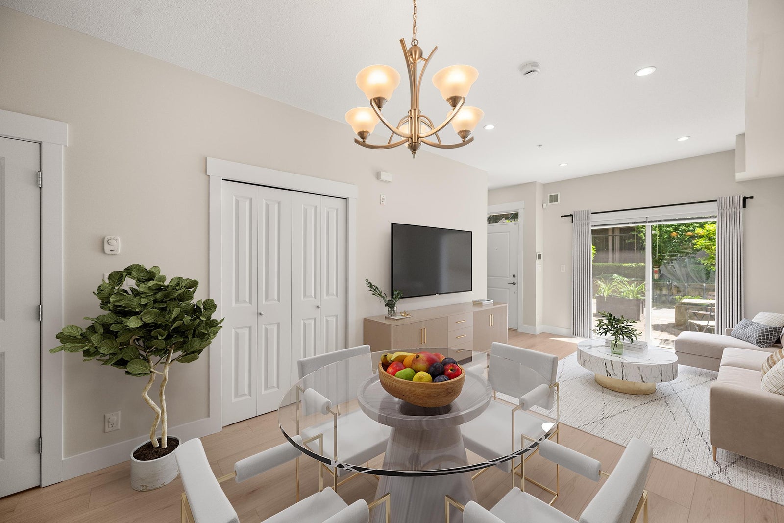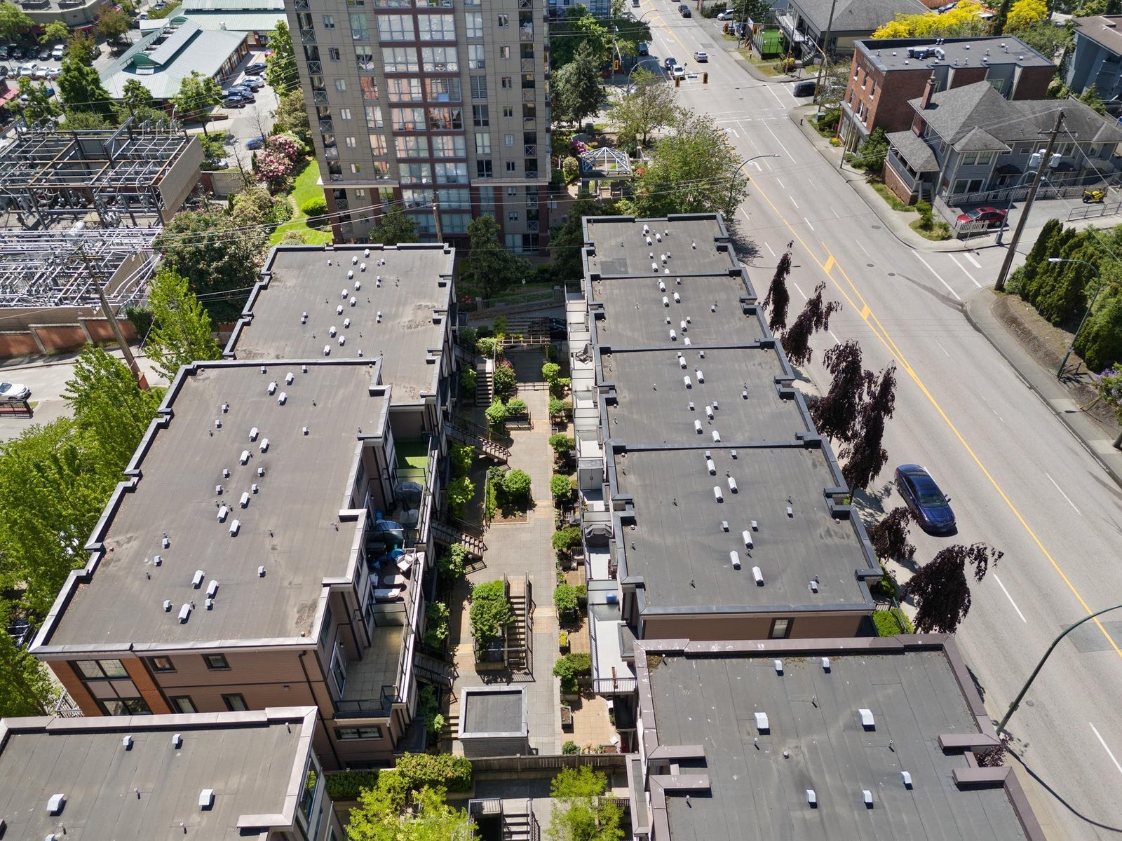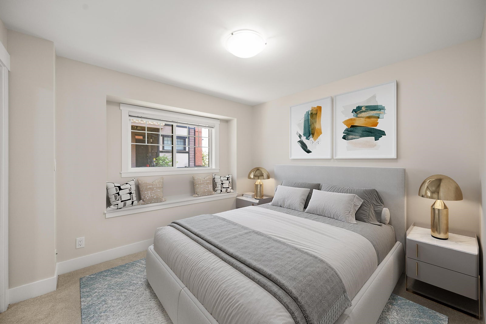 Beautiful 2 BDRM + DEN Townhome in the Boutique Brickstone Walk collection, located in the HEART of vibrant Downtown NW. Features a versatile DEN—ideal as a home office or easy 3rd BDRM. A convenient 2-piece BTHRM is located on the main level. Open-concept layout showcases an oversized chef’s kitchen w/ S/S appliances, quartz counters & custom built-in cabinetry—perfect for daily living & entertaining. BONUS a spacious main-level patio—ideal for BBQs & entertaining! Recent updates (2025) include NEW laminate flooring, plush carpet & fresh paint throughout, creating a bright, inviting space that feels BRAND NEW. Walkable to SkyTrain, Douglas College, Cinemas, Quay Market, Pier Park & Columbia Square! 1 Secure U/G Parking, 1 Locker & Visitor Parking! 2 Pets OK!