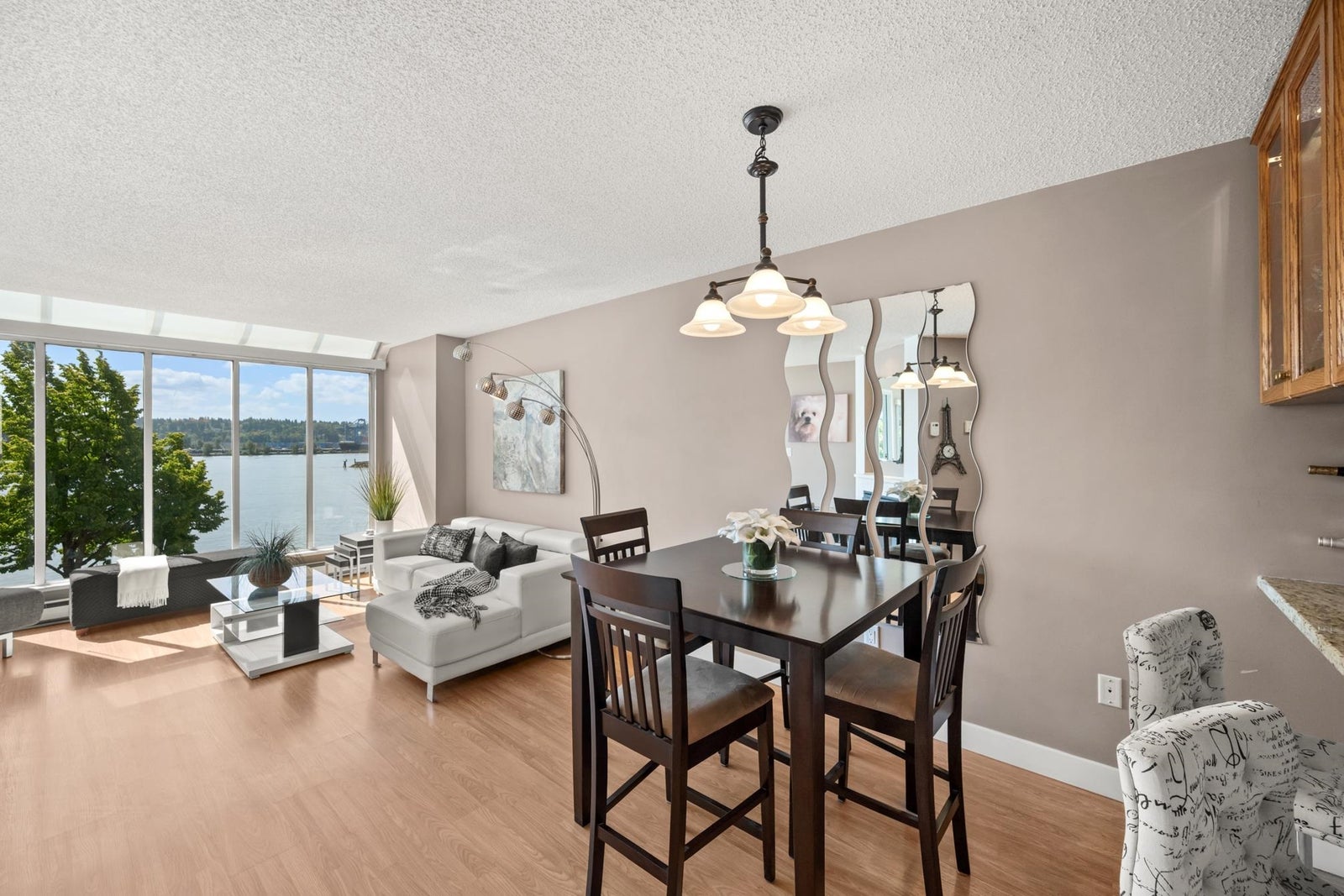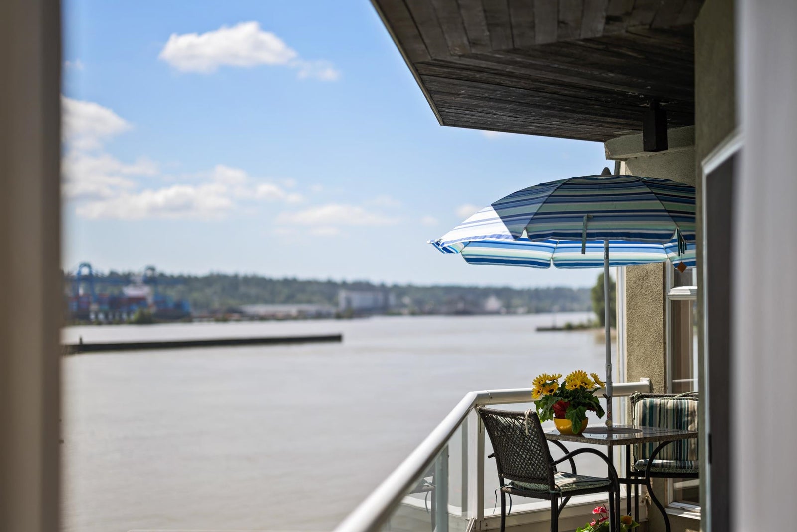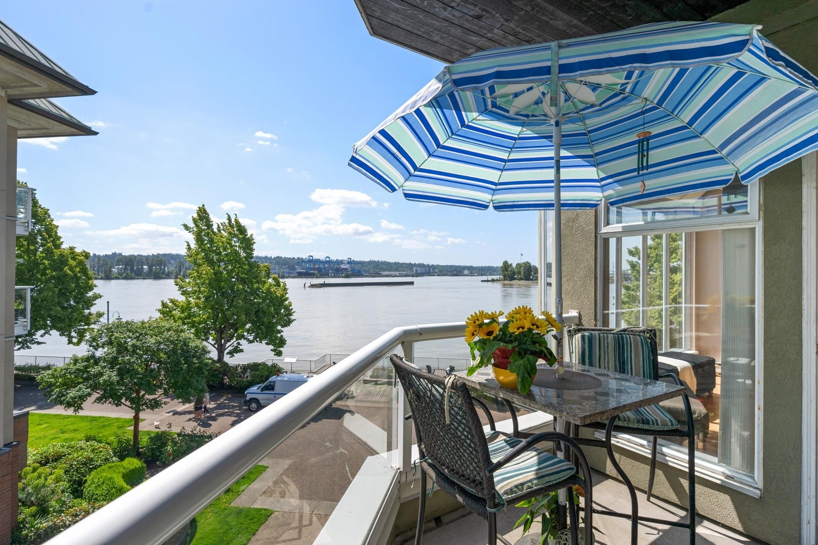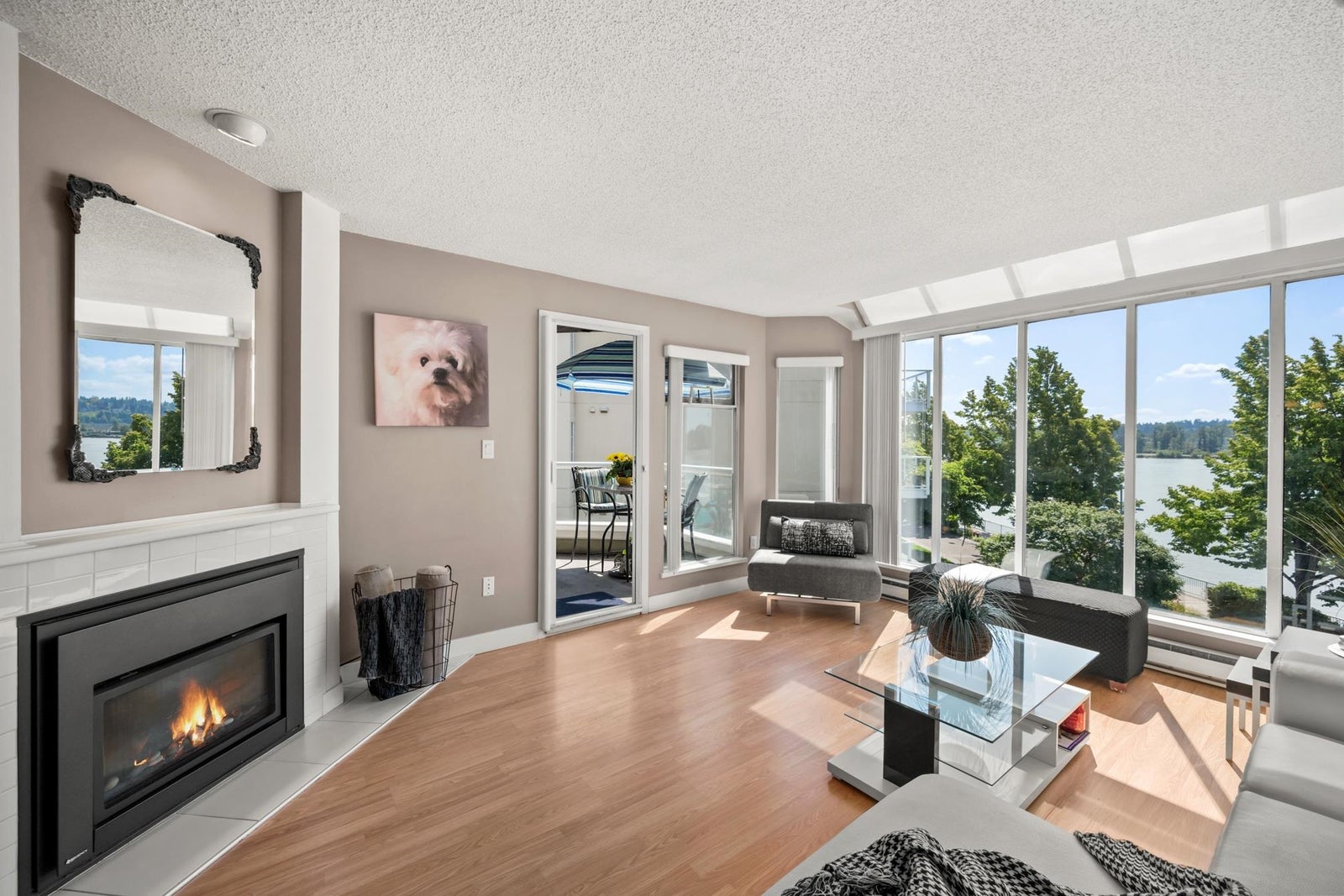 WATERFRONT LIVING AT ITS BEST! Beautifully renovated 2 BDRM 1 BATH condo at the Quay—completely front-facing w/ breathtaking views of the Fraser River! Stylish kitchen features granite countertops, undermount sink, seamless cabinetry & laminate flooring throughout. Bright LR w/ gas fireplace opens to a covered balcony, perfect for year-round BBQs & entertaining. Updated bathroom, spacious BDRMS & an excellent layout. 1 secure U/G parking stall w/ EV charger, visitor parking & private tennis court. Pet-friendly building – 2 pets OK-no size restrictions. Walk to coffee shops, restaurants, pubs, theatres, shopping & SkyTrain. A rare opportunity to own true Waterfront at the Quay!