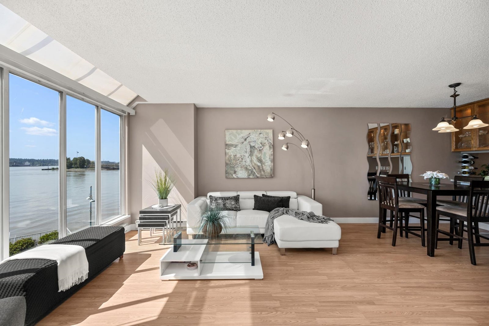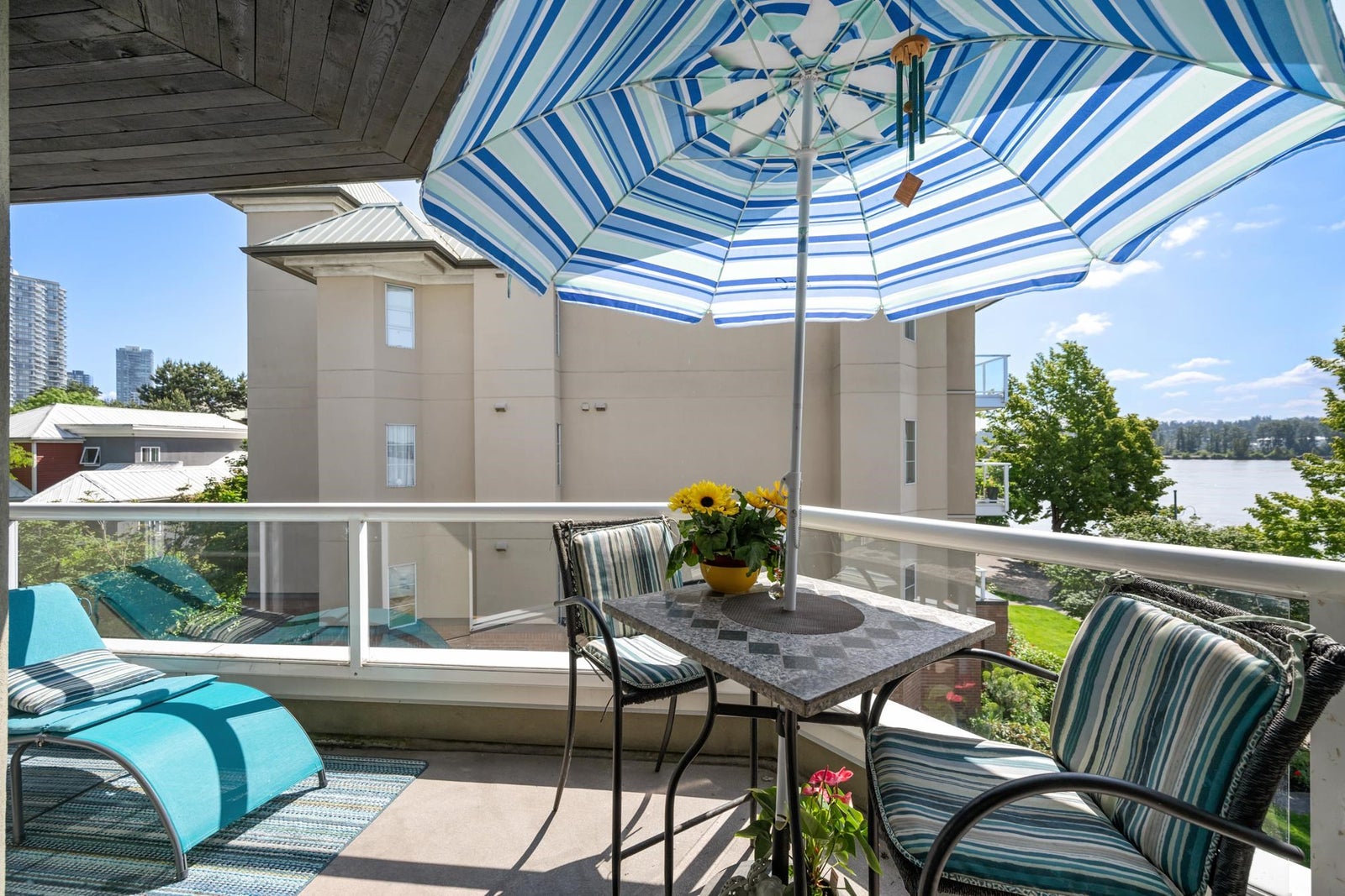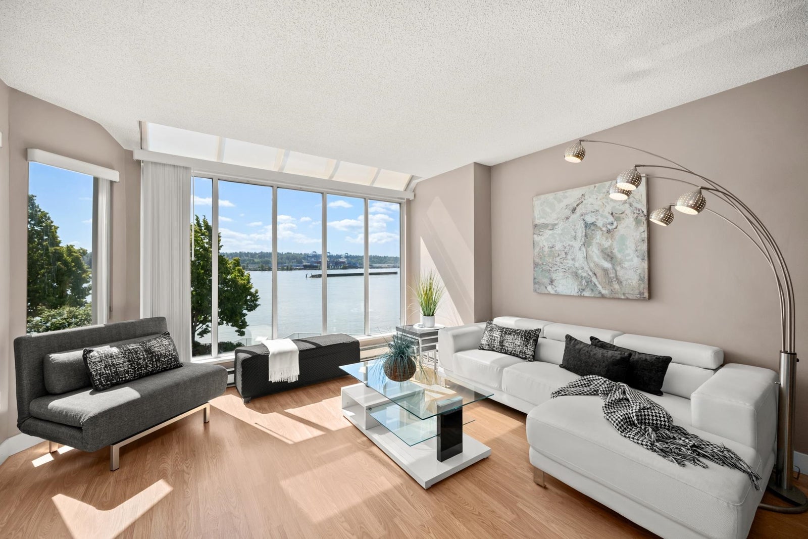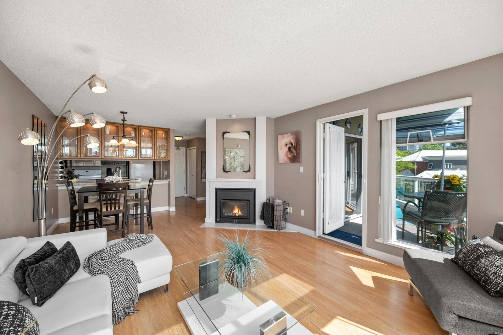 WATERFRONT LIVING AT ITS BEST! Beautifully renovated 2 BDRM 1 BATH condo at the Quay—completely front-facing w/ breathtaking views of the Fraser River! Stylish kitchen features granite countertops, undermount sink, seamless cabinetry & laminate flooring throughout. Bright LR w/ gas fireplace opens to a covered balcony, perfect for year-round BBQs & entertaining. Updated bathroom, spacious BDRMS & an excellent layout. 1 secure U/G parking stall w/ EV charger, visitor parking & private tennis court. Pet-friendly building – 2 pets OK-no size restrictions. Walk to coffee shops, restaurants, pubs, theatres, shopping & SkyTrain. A rare opportunity to own true Waterfront at the Quay!