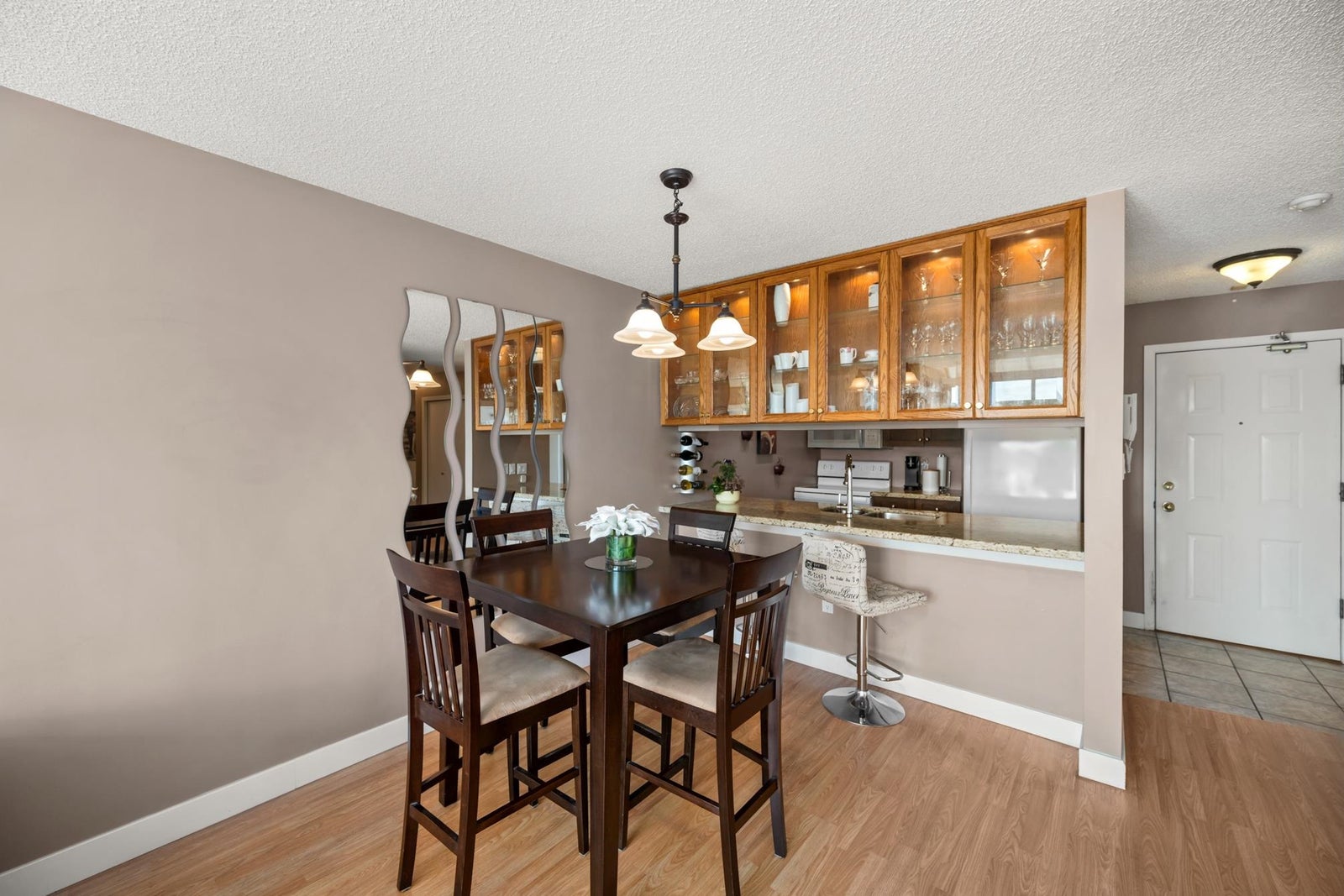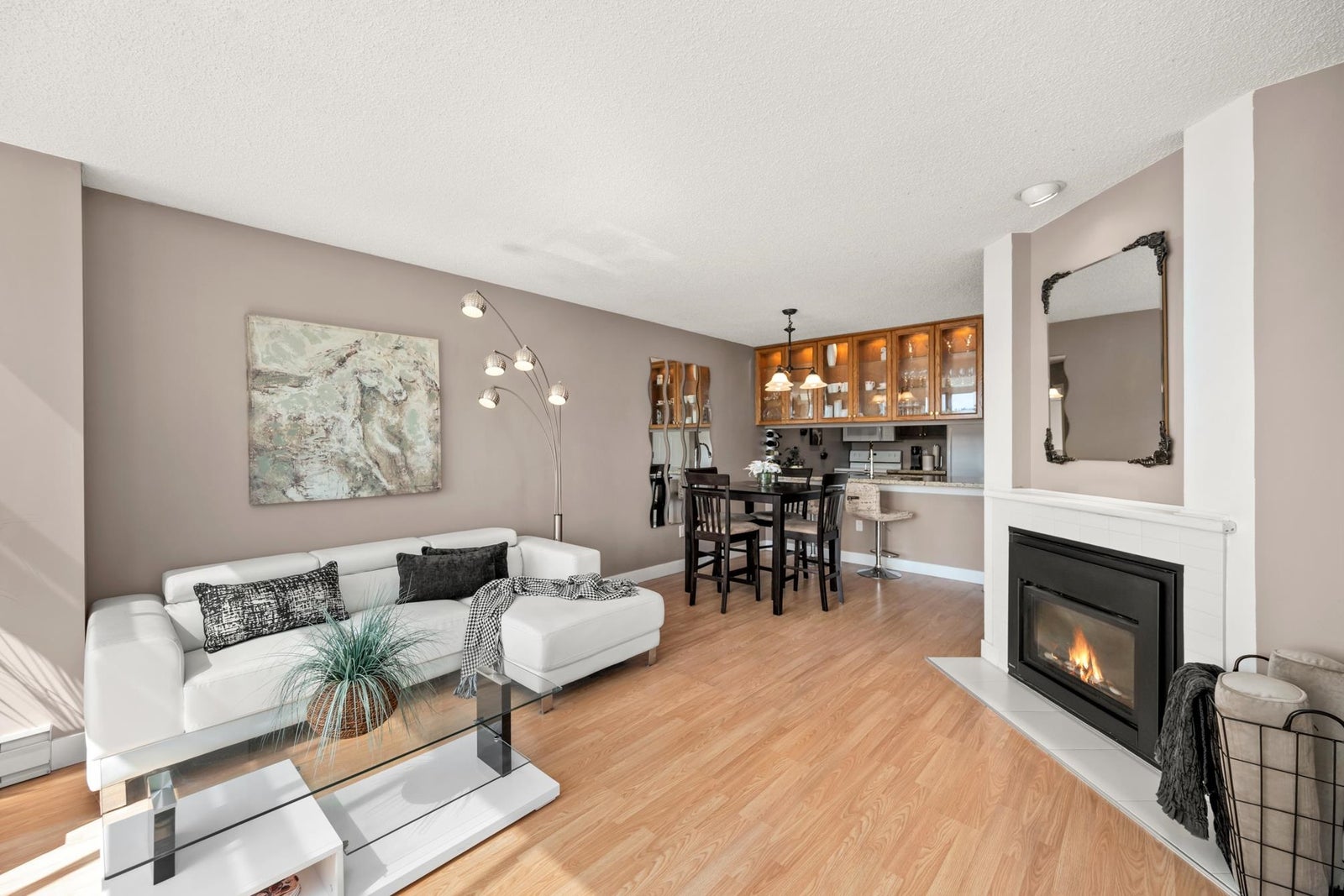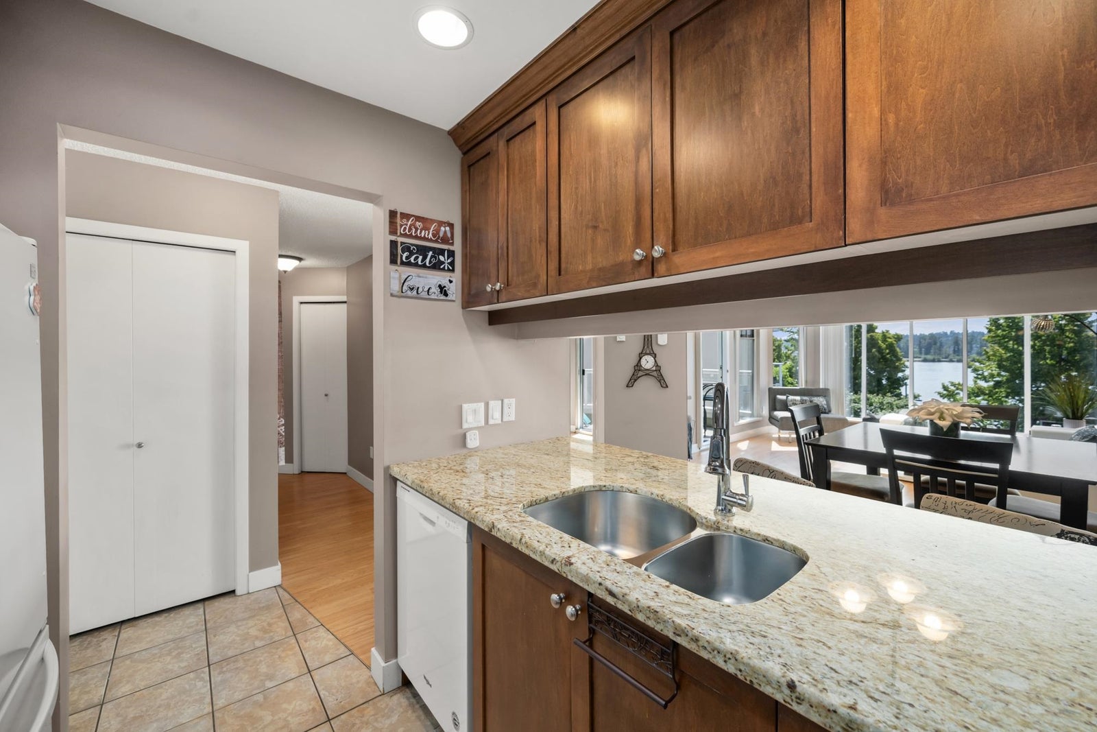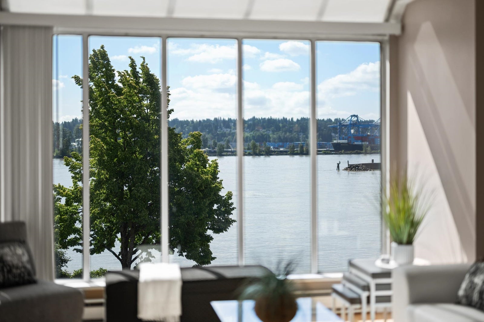 WATERFRONT LIVING AT ITS BEST! Beautifully renovated 2 BDRM 1 BATH condo at the Quay—completely front-facing w/ breathtaking views of the Fraser River! Stylish kitchen features granite countertops, undermount sink, seamless cabinetry & laminate flooring throughout. Bright LR w/ gas fireplace opens to a covered balcony, perfect for year-round BBQs & entertaining. Updated bathroom, spacious BDRMS & an excellent layout. 1 secure U/G parking stall w/ EV charger, visitor parking & private tennis court. Pet-friendly building – 2 pets OK-no size restrictions. Walk to coffee shops, restaurants, pubs, theatres, shopping & SkyTrain. A rare opportunity to own true Waterfront at the Quay!