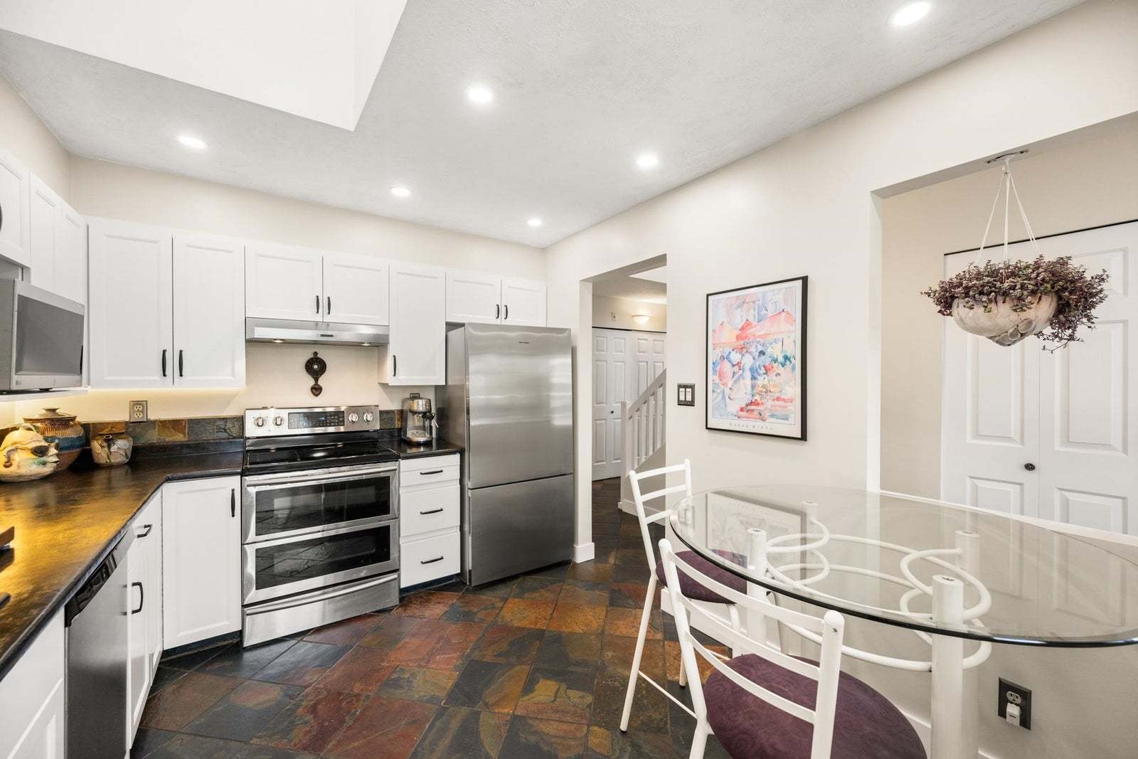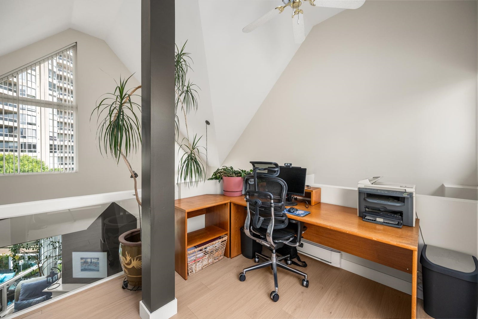 O/H SAT JULY 12TH 1-3PM! Rare Find – Rooftop Patio Living at Its Finest! It’s not every day you find a space like this— exceptional rooftop patio that truly extends your living space. Perfect for entertaining, lounging, or soaking in the sun—this outdoor oasis sets this home apart. This 2 BDRM + den, 2-level layout offers nearly 1,300 sq. ft. of beautifully updated interior space. Soaring ceilings & a unique floor plan create a bright, open feel throughout. The redesigned fireplace adds warmth & elegance to the already impressive LR/DR, where high ceilings flood the space w/ natural light & an airy ambiance. The LR/DR, stairs, & loft/den are finished w/ new laminate flooring & baseboards, all complemented by fresh paint throughout. The stunning reno’d BTHRM showcases stylish, high-end finishings. In the kitchen, you’ll find refaced cabinets, S/S appliances—including a Fisher & Paykel fridge—slate flooring, pot & undermount lighting. BONUS: a full-size laundry room w/ loads of storage, new vinyl flooring & brand-new washer/dryer. BONUS: 2 lockers! Close Shopping, Boardwalk, Restaurants, Transit! 2 pets OK!