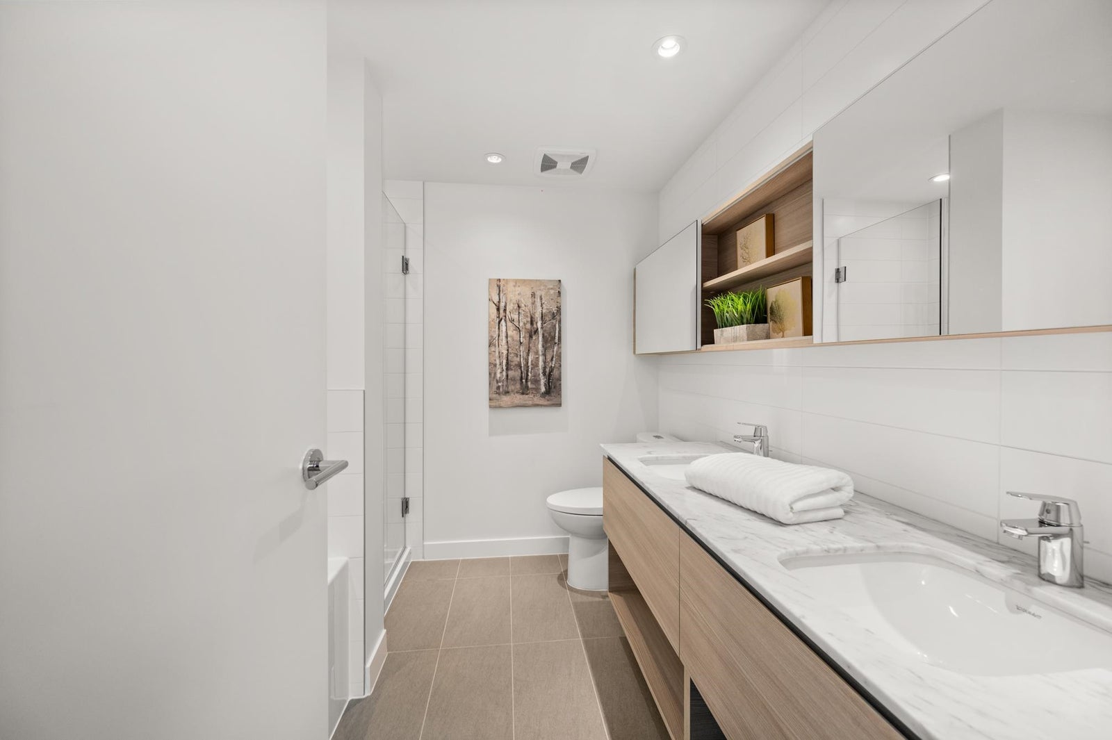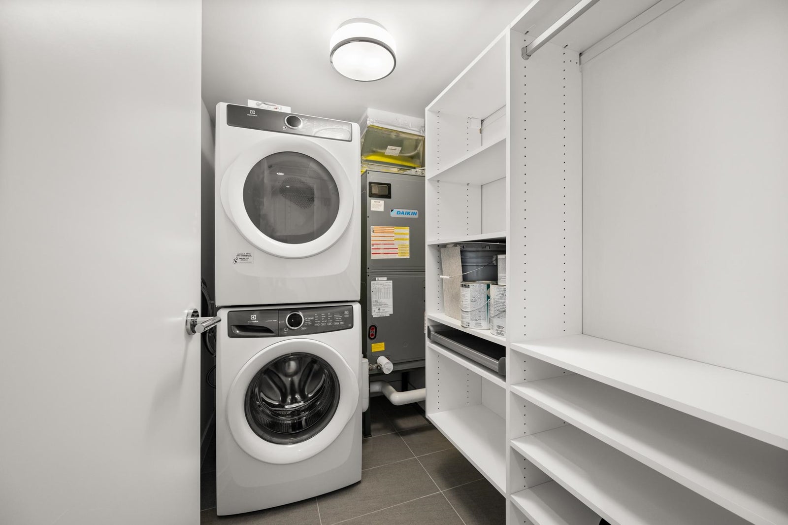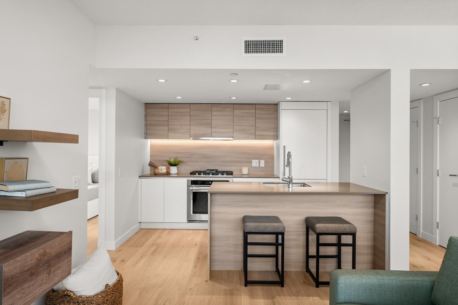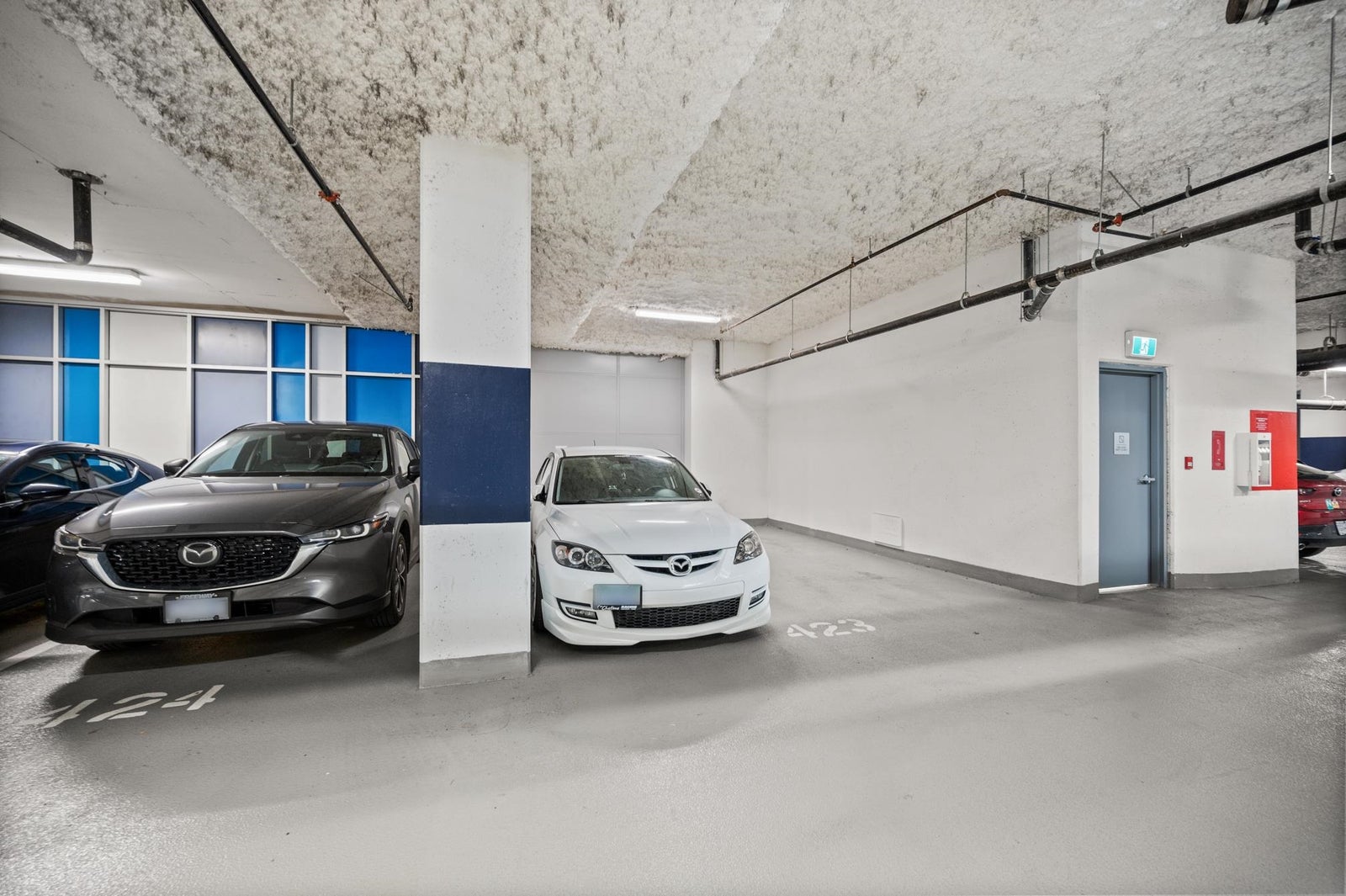 Open House Sat Oct 25th 230-4pm! BONUS 2 PARKING STALLS-LARGE enough to fit 3 VEHICLES! WATERFRONT Living BREATHTAKING Fraser River & mountain view! Built by BOSA stunning 3 BDRM 2 BTHRM SUB-PENTHOUSE features an open-concept layout, incredible natural light, engineered HW floors, custom pantry & Cali-closet organizers & roller blinds! Kitchen boasts quartz counters, S/S appliances, a gas stove & A/C throughout! Spacious master suite that can easily fit a king-size bed, has a spa-like ensuite & walk-in closet. Covered 239 sqft balcony great for entertaining! BONUS laundry room w/ extra storage, EV charger & locker. Steps to Quay Market, Boardwalk, cafes, restaurants, SkyTrain. Amenities F/T concierge, gym, bike room, clubhouse & parcel box 2 pets OK! Currently rents large stall for $300!