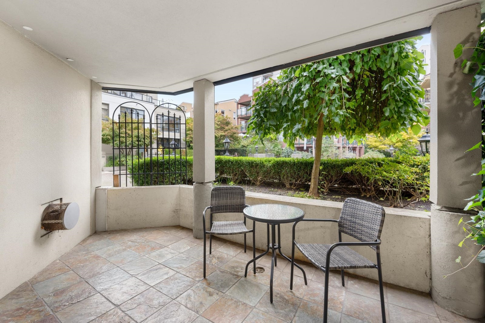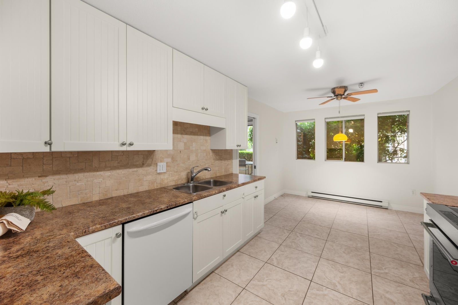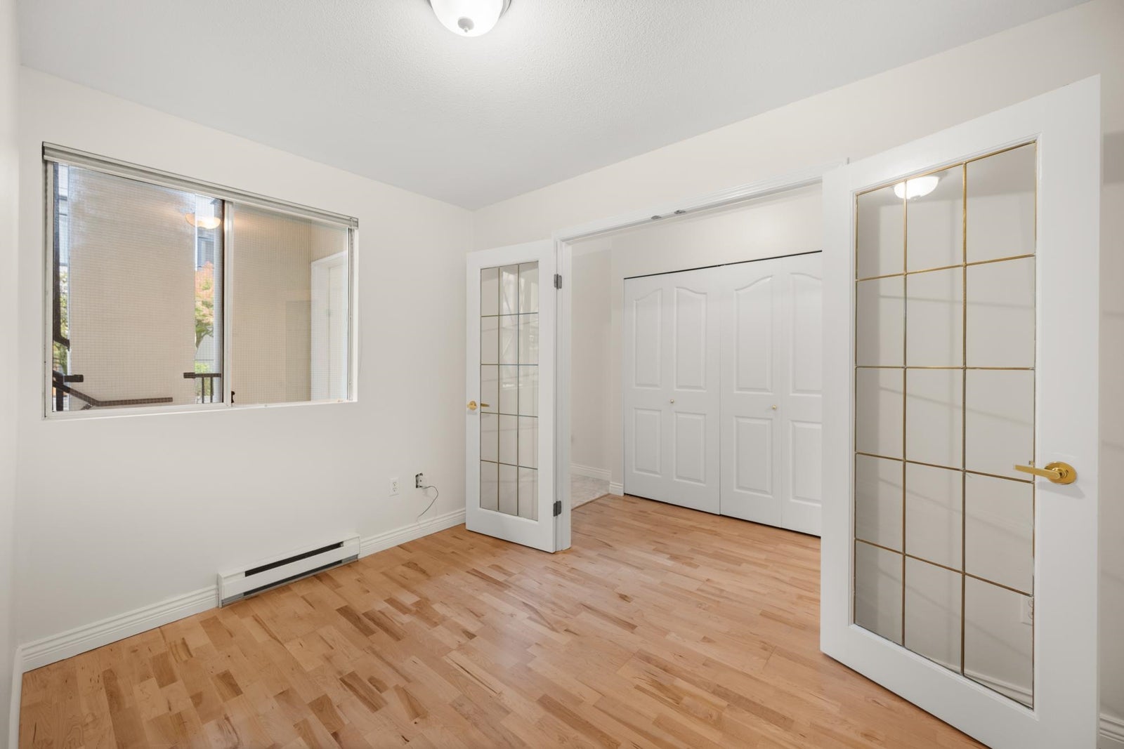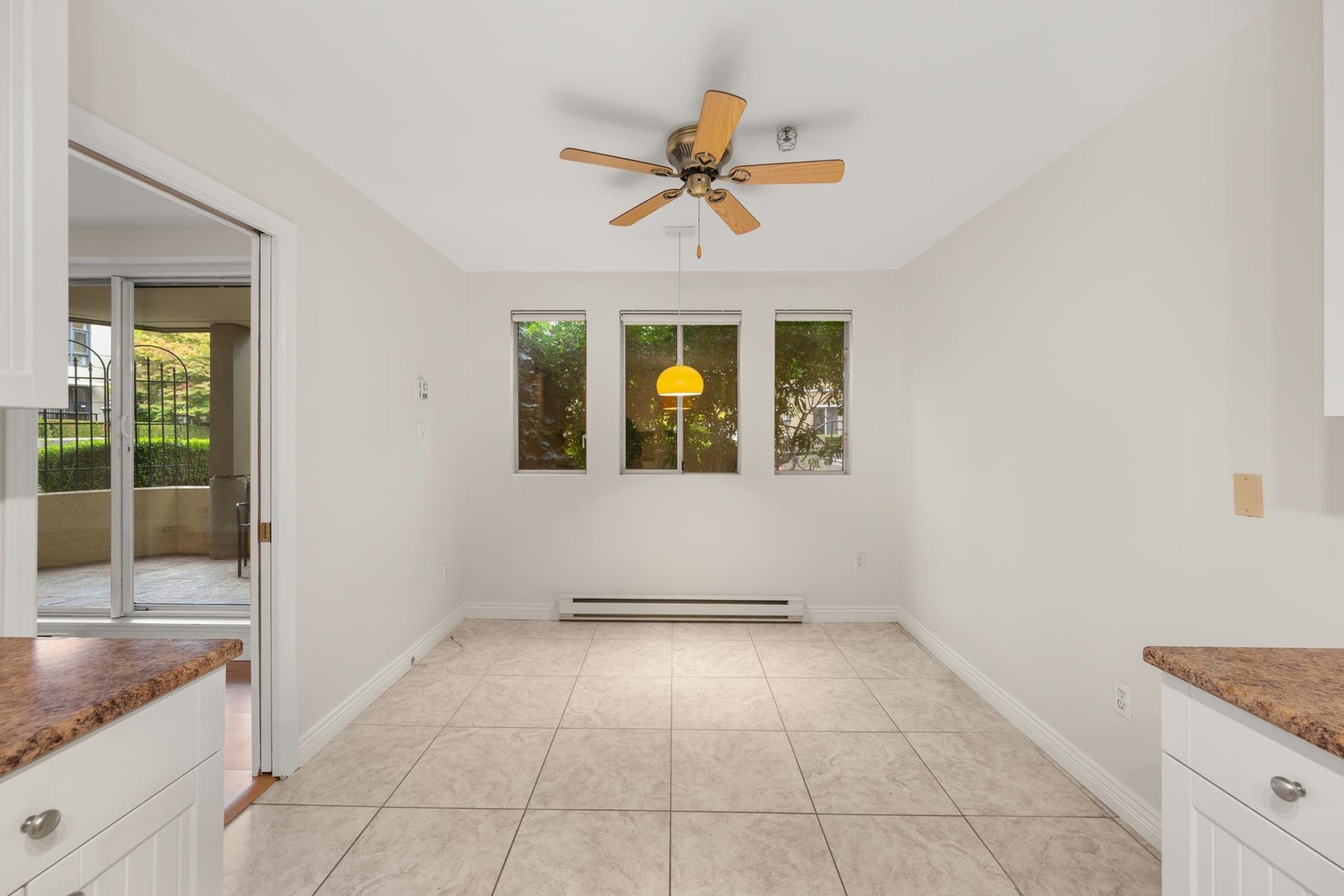 Incredible SPACE over 1600+ sqft CORNER condo at The Quay! Spacious 2 BDRM + DEN feels more like a house w/ its own private ground-level entry, windows on 3 sides, allowing for a bright, peaceful & private setting. Overlooking ponds, gardens just minutes from New Westminster’s vibrant Waterfront. Featuring HW flooring, fresh paint, renovated main bath w/ walk-in shower, fantastic kitchen w/ eating area, loads of cupboard & counter space! Not to mention a real BONUS house-size laundry room w/ built-in vacuum & extra storage. 2 secure U/G parking & Visitor Parking. Only minutes to Boardwalk at the Quay, restaurants, shops, transit! 2 Pets Ok-No Size Restriction.