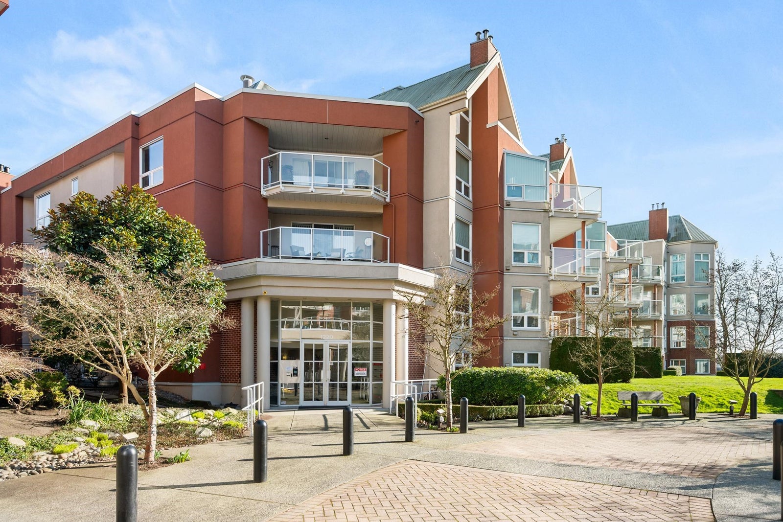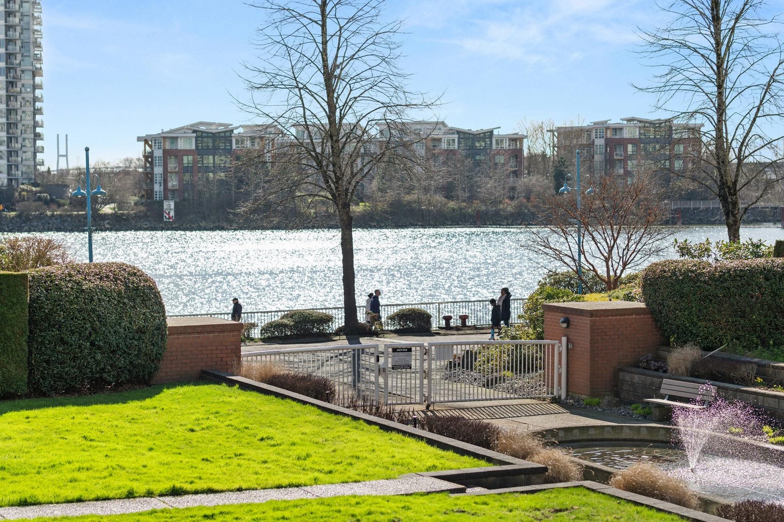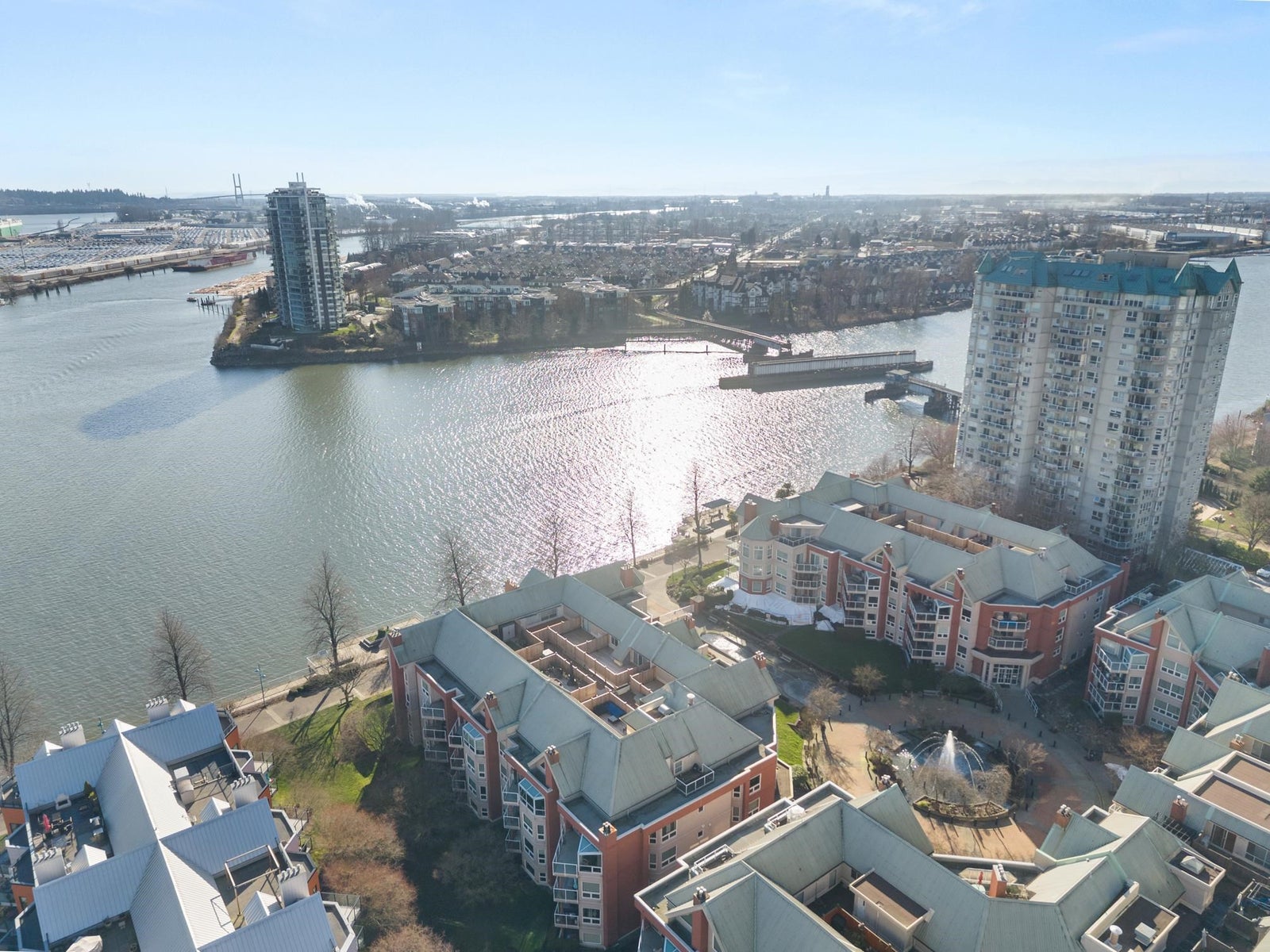 Completely renovated 2 BDRM, 2 BTHRM condo in the Quay w/ breathtaking Fraser River views! This exceptional home showcases a chef-inspired kitchen w/ a large island perfect for entertaining, quartz counters, tile backsplash, S/S appliances, soft-close cabinets w/ generous storage & pullouts. Bright open LR/DR boasts pot lighting, wooden blinds, a sleek gas fireplace, designer paint. Spa-like BTHRMS feature quartz counters, seamless glass shower, double sinks in the ensuite & wooden cabinets. Step onto the gorgeous covered balcony-great to BBQ or simply savor the river vistas. BONUS oversized laundry room w/ ample storage! 1 secure U/G parking, 2 lockers. Just steps to The Boardwalk, Pier West, shops, Dining, Quay Plaza, theatres, SkyTrain. 2 Pets OK. Rainscreen Building.