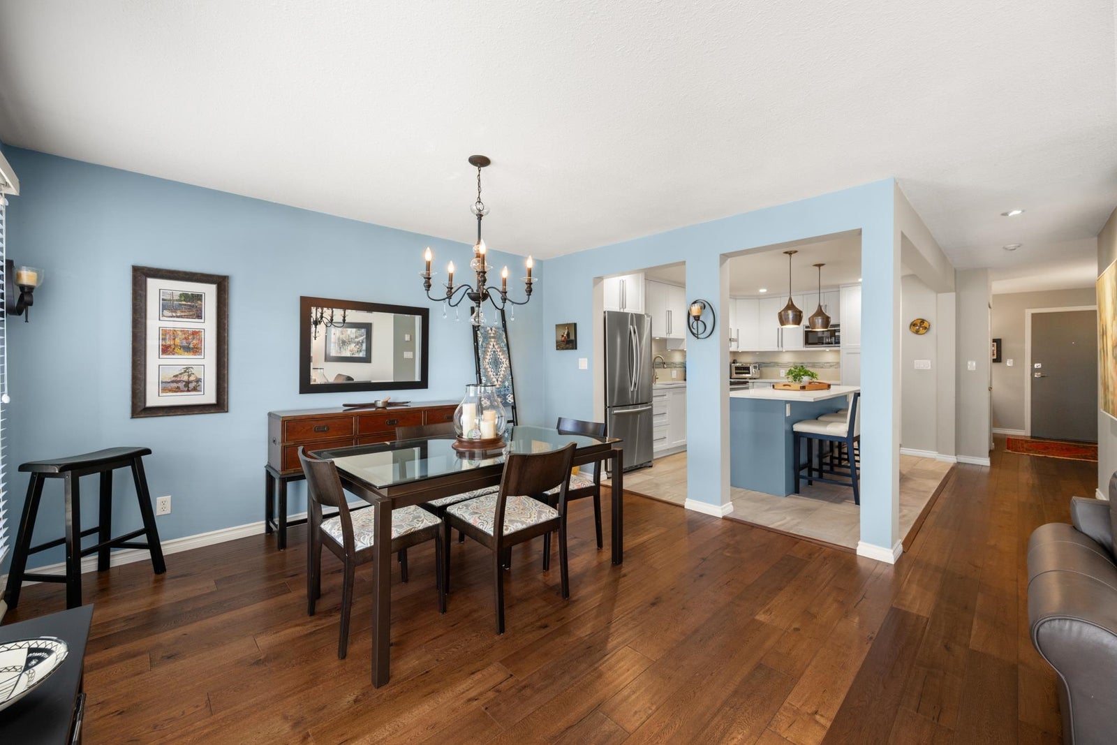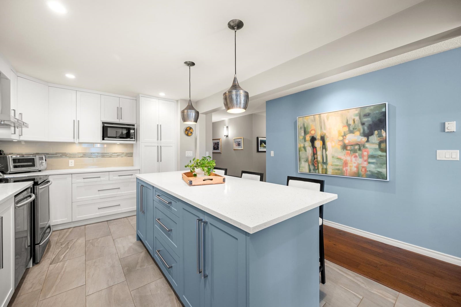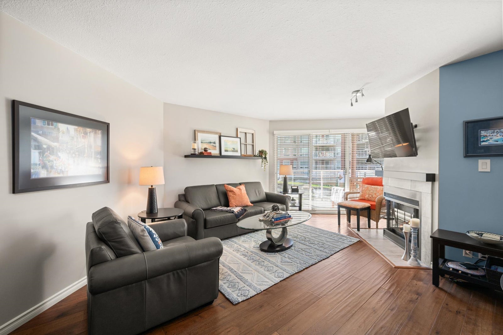 Completely renovated 2 BDRM, 2 BTHRM condo in the Quay w/ breathtaking Fraser River views! This exceptional home showcases a chef-inspired kitchen w/ a large island perfect for entertaining, quartz counters, tile backsplash, S/S appliances, soft-close cabinets w/ generous storage & pullouts. Bright open LR/DR boasts pot lighting, wooden blinds, a sleek gas fireplace, designer paint. Spa-like BTHRMS feature quartz counters, seamless glass shower, double sinks in the ensuite & wooden cabinets. Step onto the gorgeous covered balcony-great to BBQ or simply savor the river vistas. BONUS oversized laundry room w/ ample storage! 1 secure U/G parking, 2 lockers. Just steps to The Boardwalk, Pier West, shops, Dining, Quay Plaza, theatres, SkyTrain. 2 Pets OK. Rainscreen Building.
