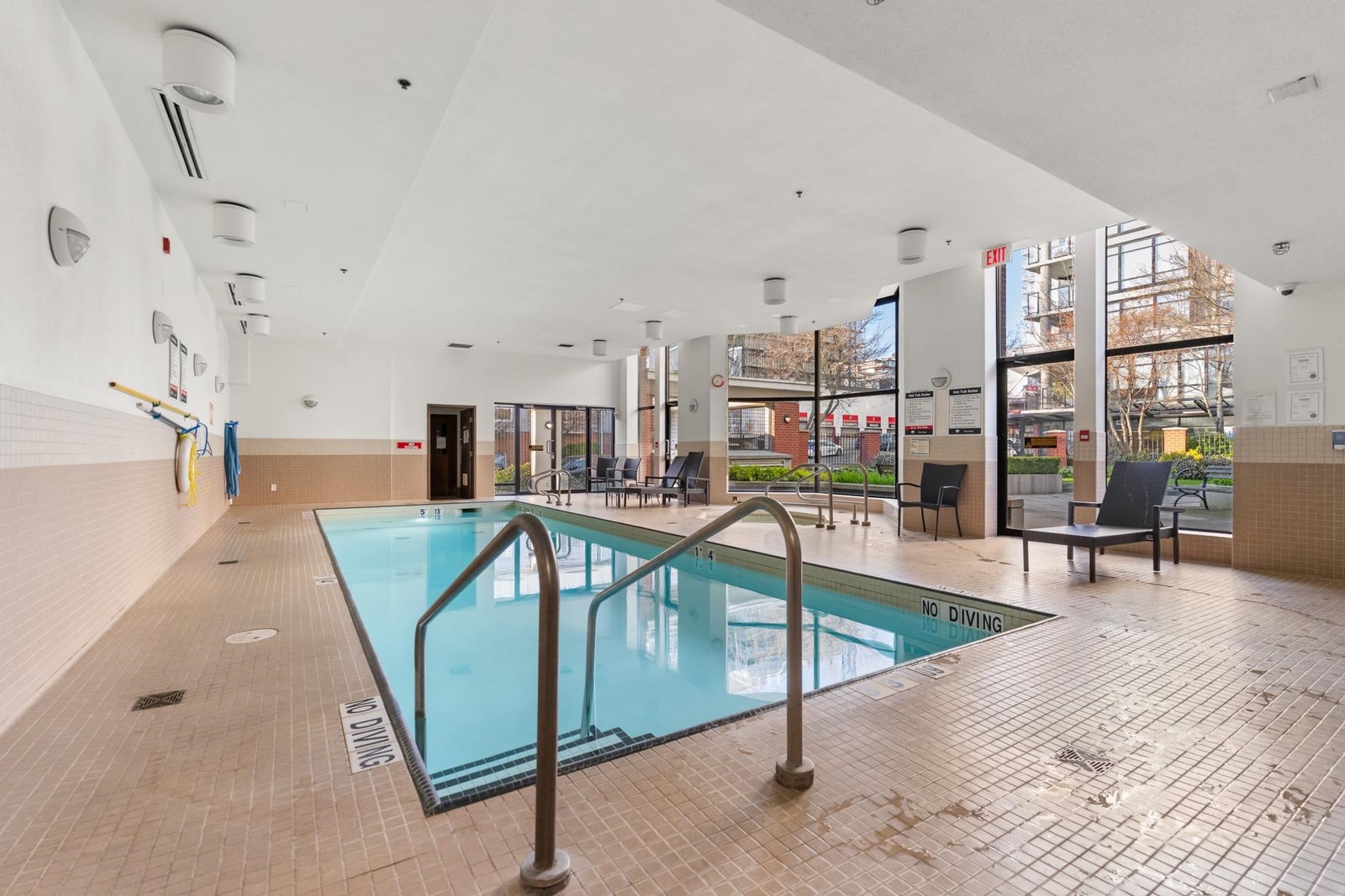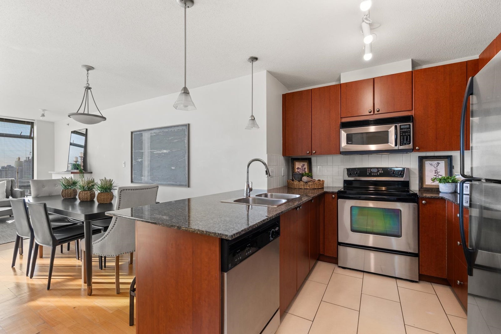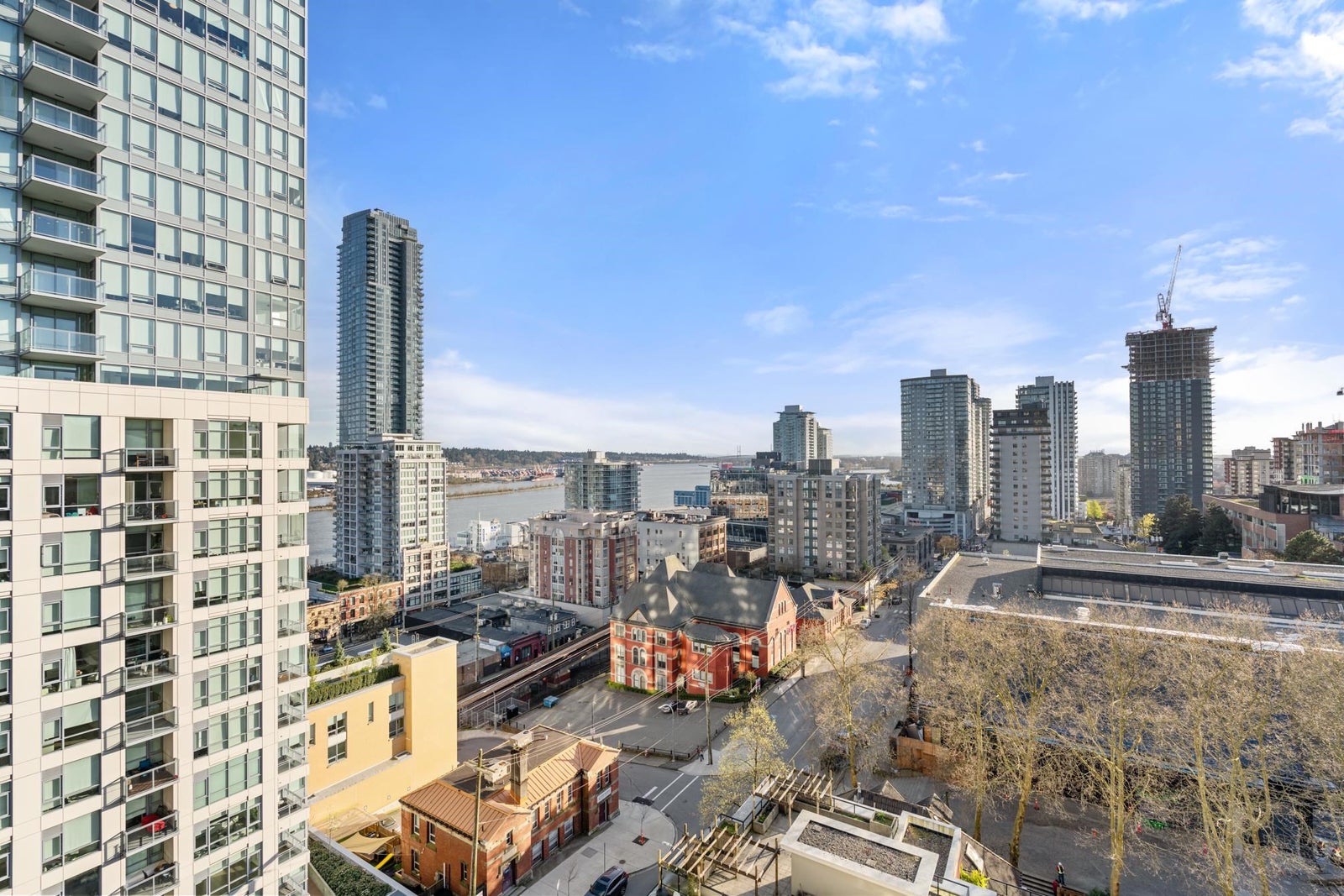 O/H Sun 12-2pm! If it’s VIEW you’re looking for, look no further! Stunning 1 BDRM, 1 BTHRM condo in the Heart of Downtown New Westminster, offering unobstructed views of the city skyline & Fraser River. Bright open-concept layout w/ floor-to-ceiling windows, granite countertops, S/S appliances, electric fireplace, new carpet in BDRM & engineered hardwood flooring. Step onto your covered deck, perfect for morning coffee or evening entertaining. Spacious walk-in closet adds everyday luxury. Resort-style amenities include indoor pool, hot tub, gym, media room, clubhouse & visitor parking-a rare find in the city. Steps to SkyTrain, Douglas College, shops, restaurants, parks & the vibrant waterfront Quay living. A perfect blend of convenience, lifestyle & breathtaking beauty! Bonus 2 pets OK.