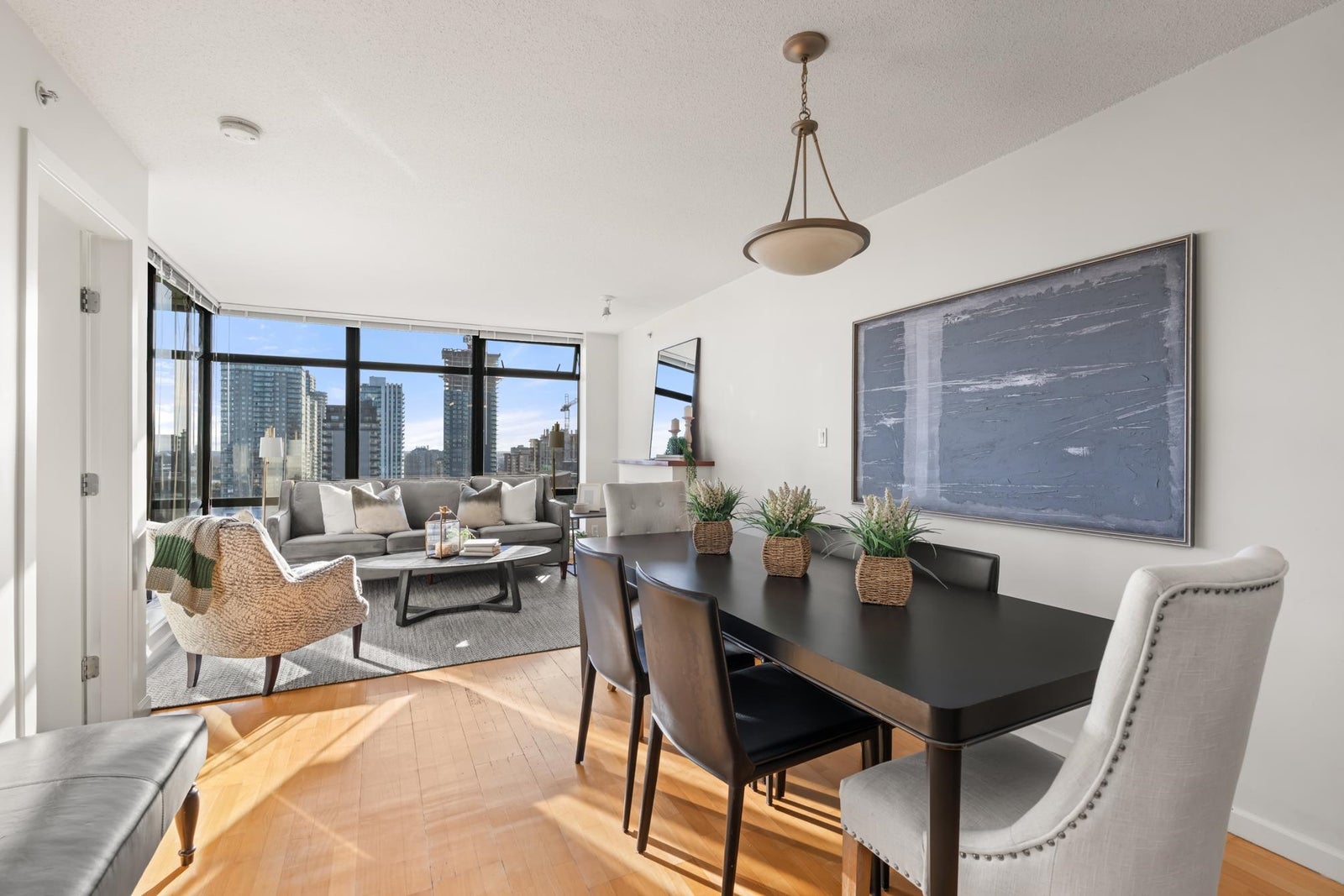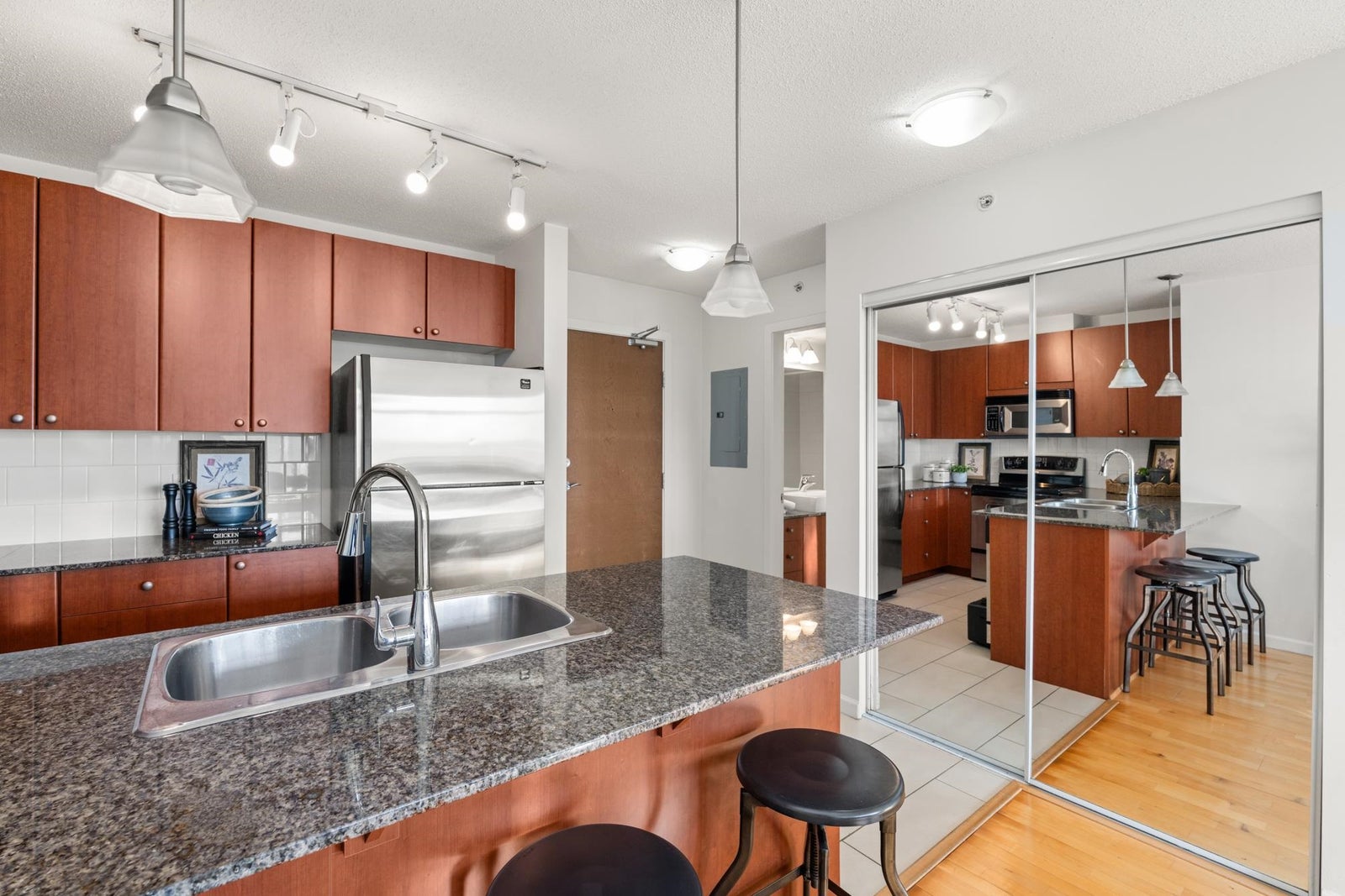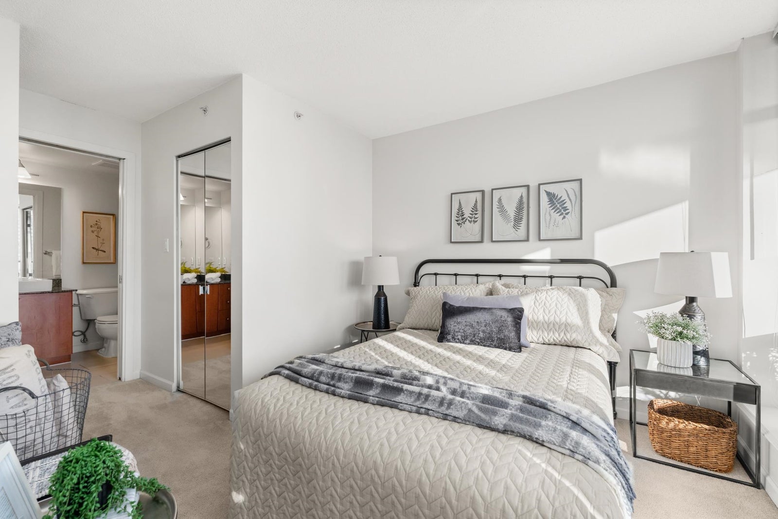 O/H Sun 12-2pm! If it’s VIEW you’re looking for, look no further! Stunning 1 BDRM, 1 BTHRM condo in the Heart of Downtown New Westminster, offering unobstructed views of the city skyline & Fraser River. Bright open-concept layout w/ floor-to-ceiling windows, granite countertops, S/S appliances, electric fireplace, new carpet in BDRM & engineered hardwood flooring. Step onto your covered deck, perfect for morning coffee or evening entertaining. Spacious walk-in closet adds everyday luxury. Resort-style amenities include indoor pool, hot tub, gym, media room, clubhouse & visitor parking-a rare find in the city. Steps to SkyTrain, Douglas College, shops, restaurants, parks & the vibrant waterfront Quay living. A perfect blend of convenience, lifestyle & breathtaking beauty! Bonus 2 pets OK.